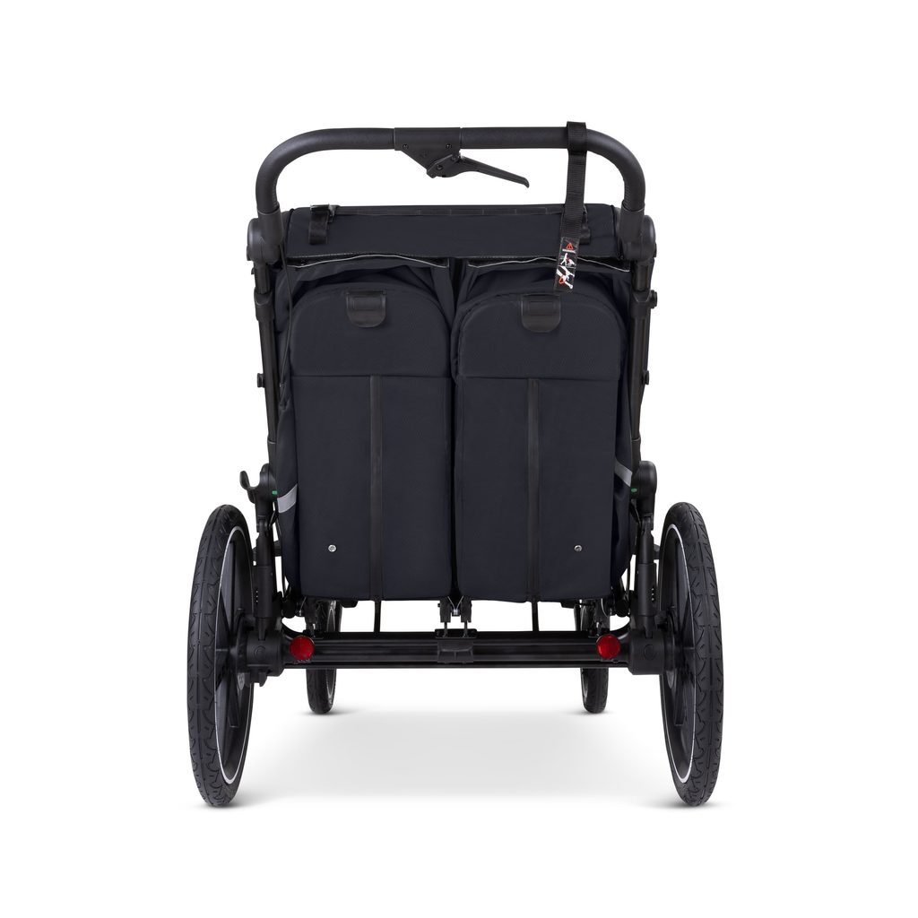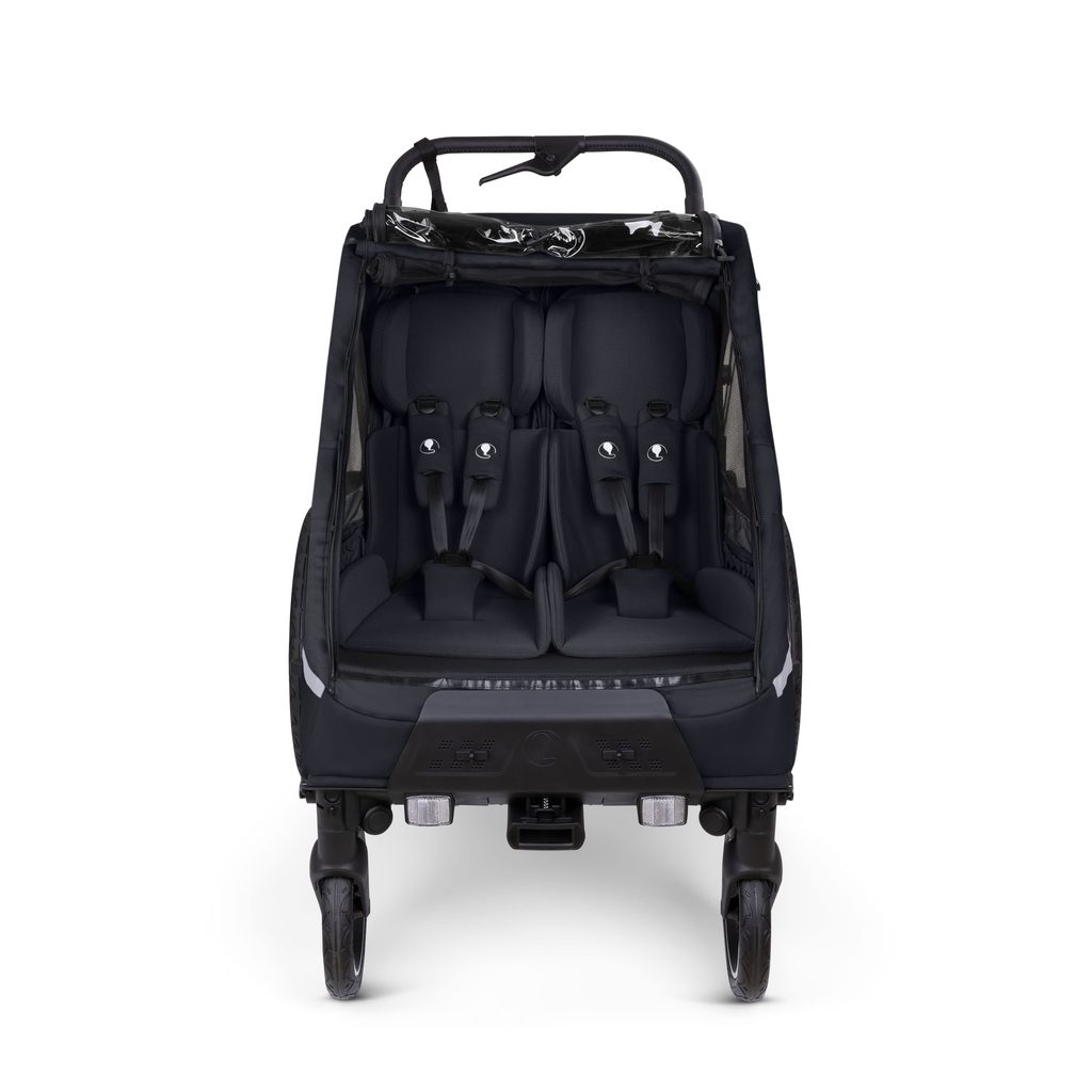 Bike Trailer Tour nabízí flexibilitu, bezpečnost a pohodlí. Komfortní sedadla CozyCloud® jsou nastavitelná, s měkkým polstrováním a funkcí polohování, přičemž 5bodový bezpečnostní pás zajistí maximální bezpečí. Ruční kotoučové brzdy podporují kontrolu a přesné brzdění, což oceníte zejména při rychlejší jízdě nebo na strmějších cestách. Výkonné odpružení umožňuje hladkou jízdu na jakémkoli povrchu.