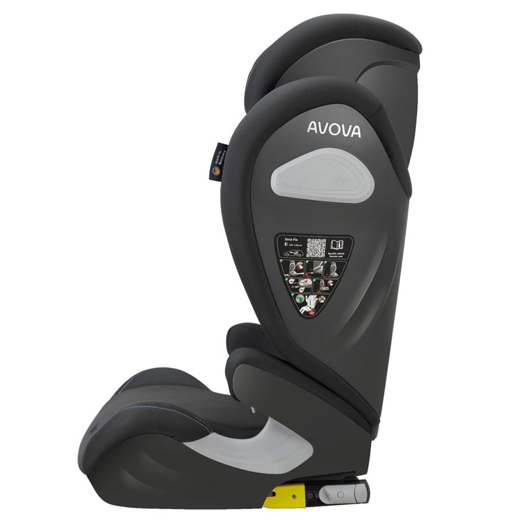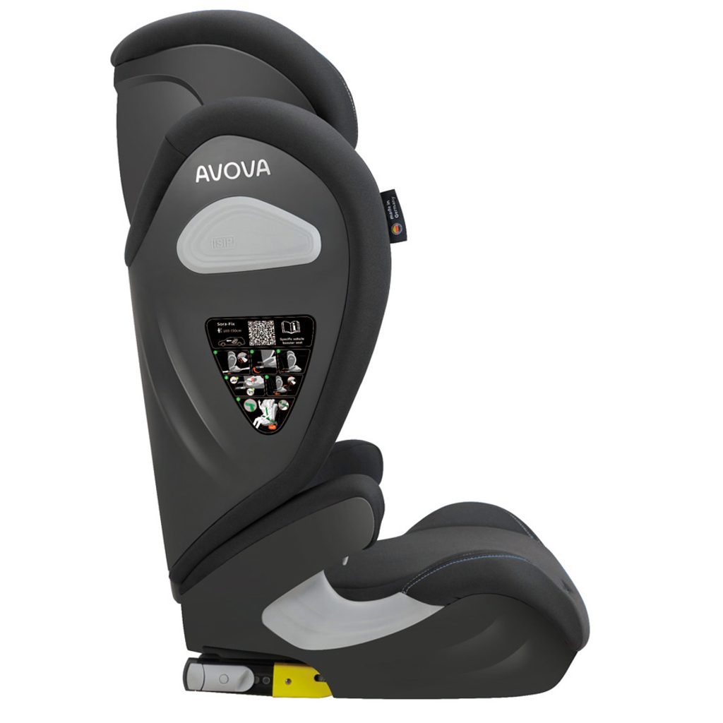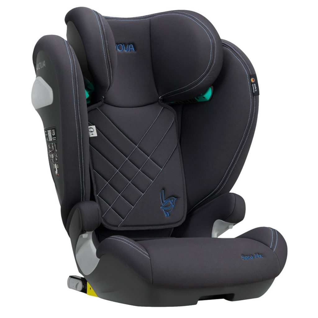 Atraktivní, modře štepovaná, dětská autosedačka Avova SORA-FIX je schválena podle R-129 pro děti s výškou 100-150 cm, přibližně od 3 do 12 let. Lze ji instalovat po směru jízdy k ISOFIXu vozidla. Vítěz Reddot Design Award 2023.