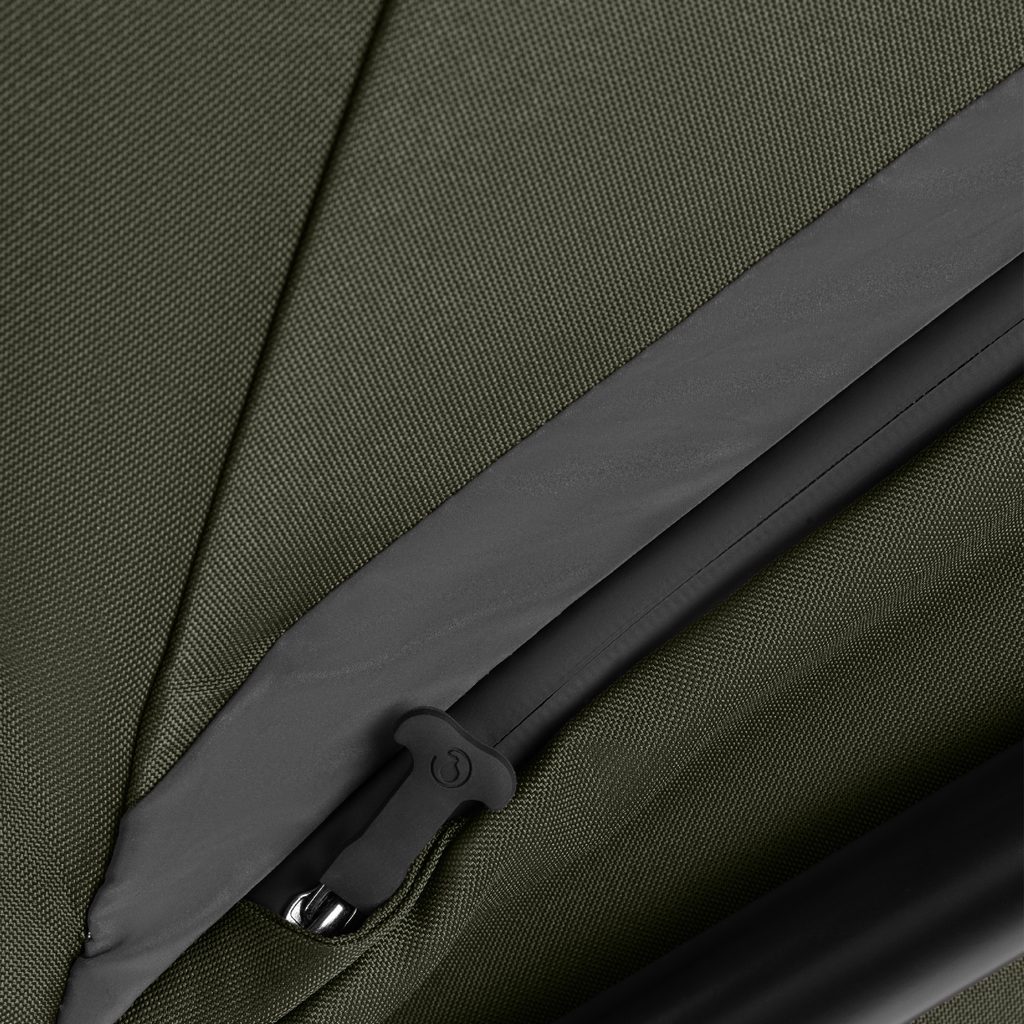 - Prodloužená stříška s UV ochranou 50+ – nabízí dostatek stínu a ochranu před sluncem; je vybavena výklopnou sluneční clonou pro dodatečnou ochranu při nízkém slunci