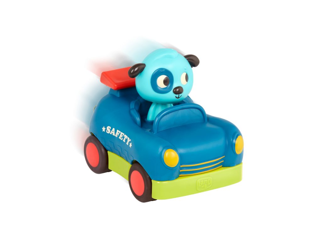Autíčko pro nejmenší řidiče a řidičky má jednoduché ovládání s pomocí dálkového ovladače se třemi tlačítky. Jedním tlačítkem se ovládá jízda dopředu, druhým tlačítkem otáčení o 360°. Po zmáčknutí řidiče v podobě pejska se ozvou 4 legrační zvuky. Baterie 4xAA v autě a 2xAAA v ovladači nejsou součástí balení. Vhodné pro děti od 2 let.