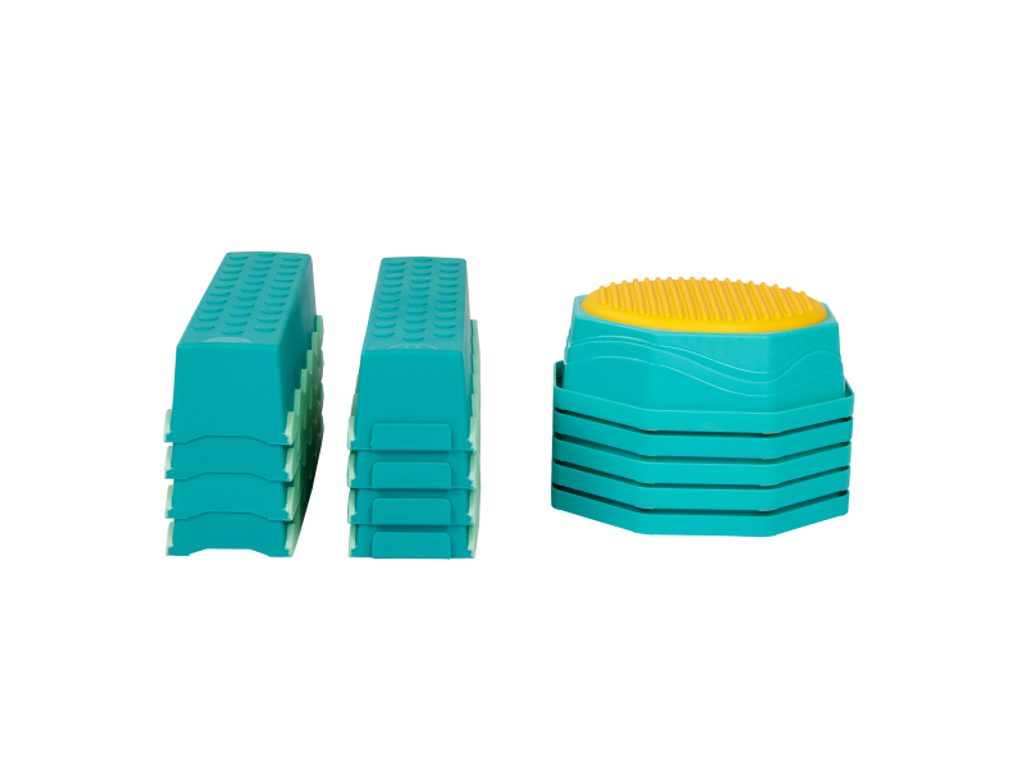 Variabilní překážková dráha poskytne vašim dětem zábavu a zároveň pomáhá rozvíjet jejich rovnováhu, koordinaci a hrubou motoriku. Sada obsahující 8 rovných a 5 kulatých překážek nabízí mnoho kombinací a způsobů použití, takže pokaždé můžete vymyslet novou, zajímavou variantu. Každá kulatá překážka navíc nabízí jinou texturu na horní barevné straně. Jednotlivé díly se velmi snadno spojují. Vhodné pro děti od 3 let. Nosnost - 50kg