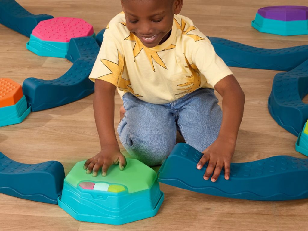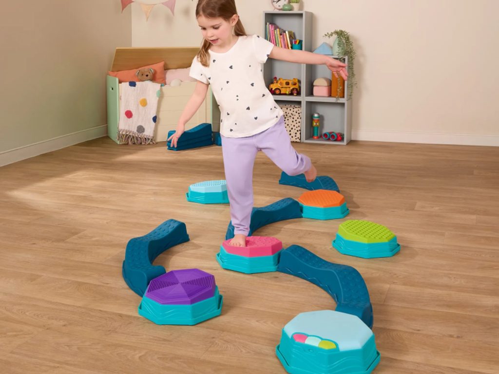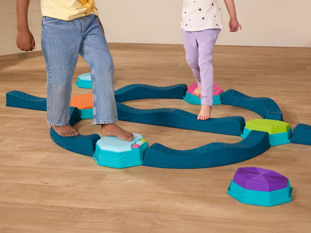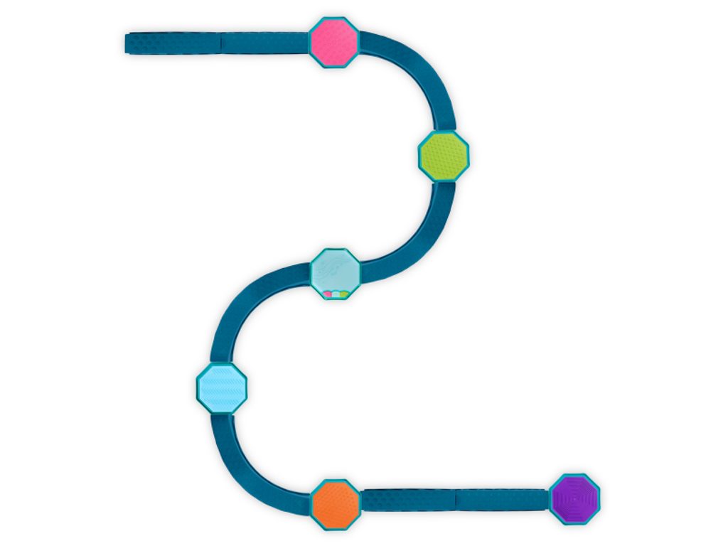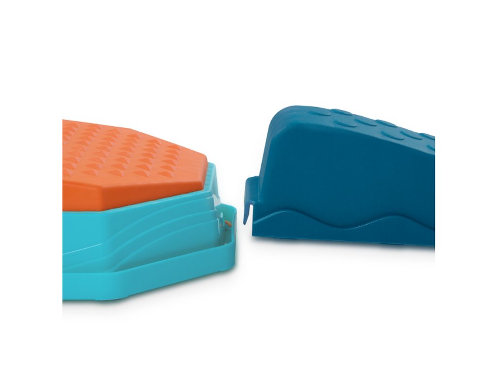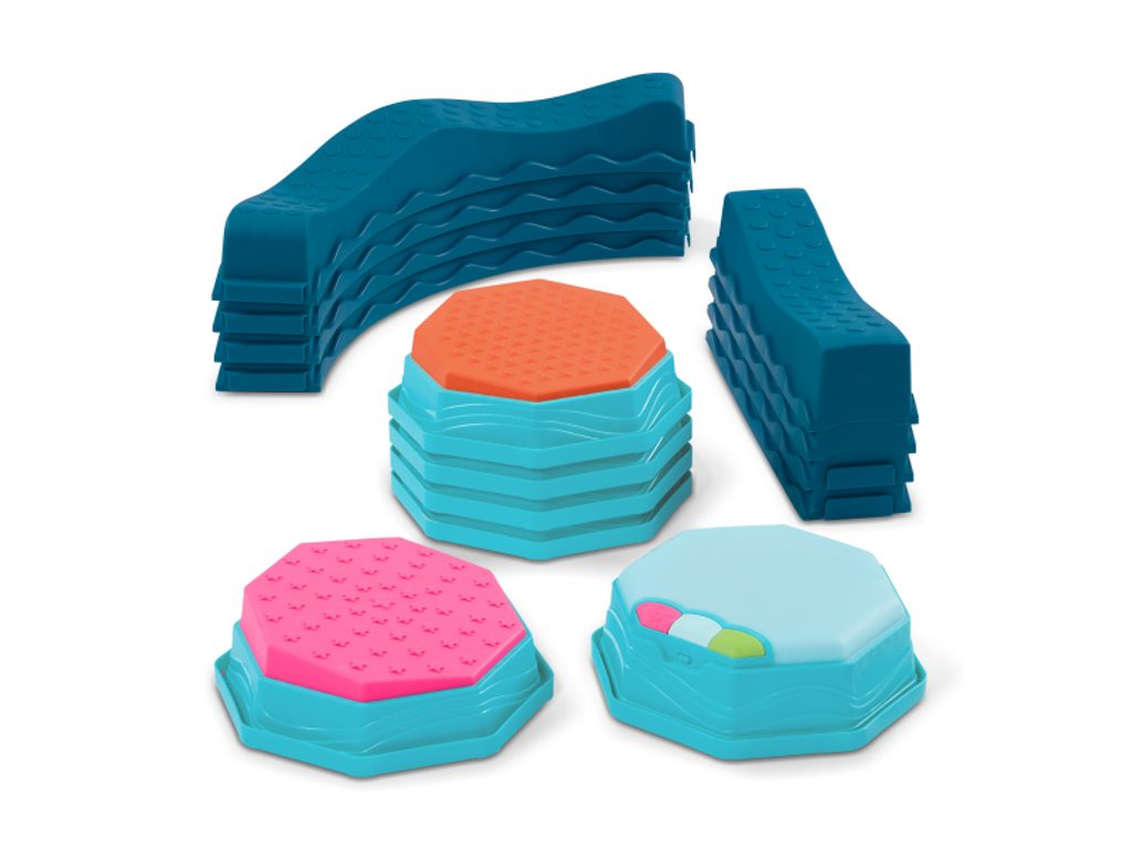 Variabilní překážková dráha Balance & Groove poskytne vašim dětem zábavu a zároveň pomáhá rozvíjet jejich rovnováhu, koordinaci a hrubou motoriku. Součástí sady je speciální hudební stupínek s LED světelnými efekty, který dodává celé dráze magický efekt a motivuje děti zkoušet další a další herní varianty. Sada nabízí mnoho kombinací a způsobů použití, takže pokaždé můžete vymyslet novou, zajímavou variantu. Každý kulatý stupínek navíc nabízí jinou texturu na horní barevné straně. Modulární balanční dráha – 4 vlnité překážky, 4 rovné překážky a 5 senzorických stupínků umožňují nekonečné kombinace a variabilní stavby Hudební stupínek s LED světelnými efekty – speciální díl, který hraje a svítí a nabízí tři zábavné hry Podpora motorického rozvoje – chůze po dráze posiluje rovnováhu, koordinaci a jistotu pohybu Senzorické zážitky – různé povrchy stupínků podporují hmatové vnímání a rozvoj smyslů Jednotlivé díly se velmi snadno spojují Pro samostatnou i skupinovou hru – ideální pro děti, které si chtějí hrát samy, i pro společné aktivity s kamarády nebo sourozenci Jednoduché skladování – všechny díly lze snadno stohovat a kompaktně uložit Vhodné pro vnitřní i venkovní hraní Sadu je možné kombinovat se samostatně prodávanou překážkovou dráhou Balance & Hop i sadou sadou překážek a stupínků Balance & Build. Baterie 4x AA (1,5V) jsou součástí. Vhodné pro děti od 3 let.