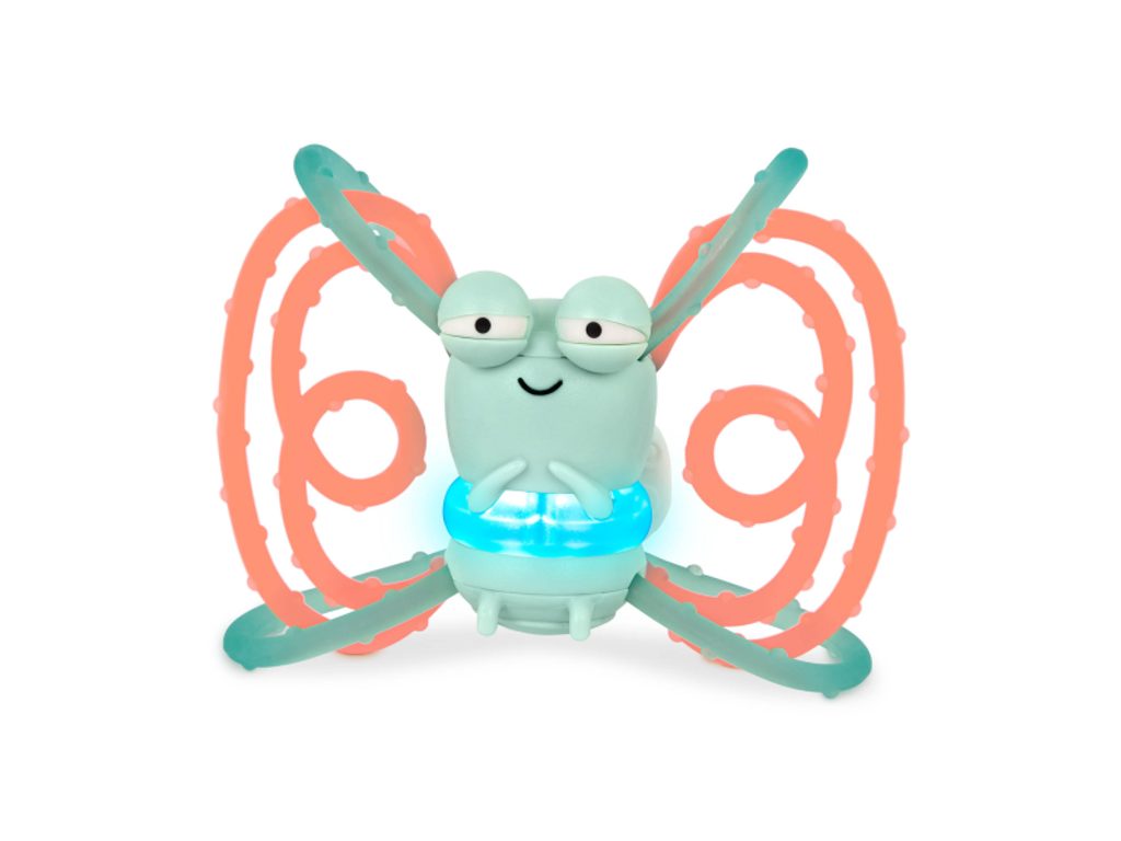 Toto roztomilé kousátko ve tvaru světlušky je ideální společník pro první objevování světa i úlevu při prořezávání zoubků. Po jemném zatřesení se rozsvítí tlumeným světlem, které zaujme a uklidní.