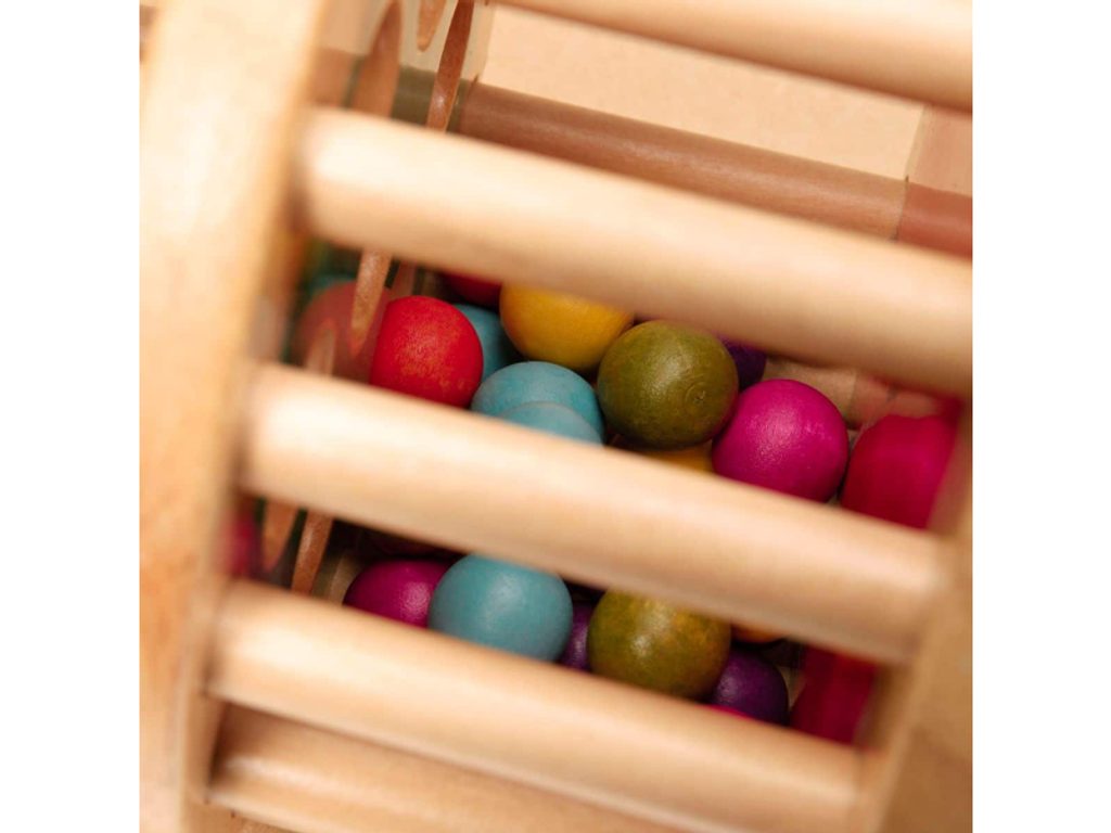 Dřevěný válec se 42 barevnými dřevěnými kuličkami při otáčení vytváří příjemný zvuk deště. Hračka v kvalitním dřevěném provedení bude i krásnou dekorací v dětském pokoji. Hračka pomáhá rozvíjet jemnou motoriku dítěte i koordinaci rukou a očí dítěte. Rozměry: 20 x 13 x 13 cm Vhodné pro děti od 18 měsíců.