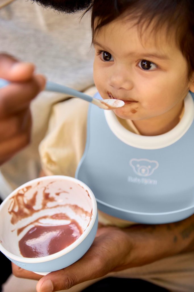 • stabilní miska, malý praktický bryndáček a lžička na krmení