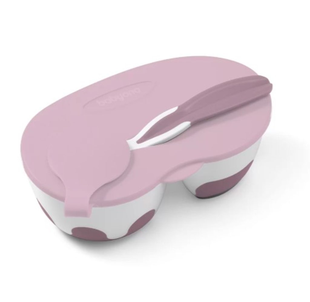 Dvokomorová miska s lžičkou Babyono – Ideální pro procházky a cestování