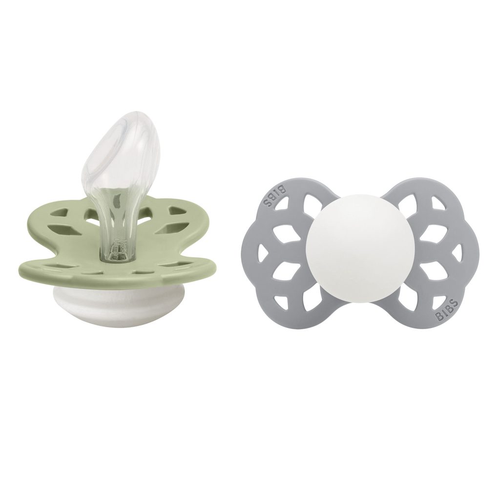 BIBS dobývajú celý svet. Jednoduché a štýlové. Ikonické cumlíky navrhnuté a vyrábané v Dánsku už od roku 1978. Ich minimalistický škandinávsky dizajn a široký farebný výber sú pre BIBS cumlíky typické. Všetky BIBS produkty sú garanciou najvyššej kvality detského sortimentu. BIBS Infinity je exkluzívny ortodontický cumlík anatomického tvaru s jedinečným dizajnom prepletených kruhov, ktoré symbolizujú kolobeh života a nekonečnosť. Dokonalá súhra čistého minimalizmu, elegancie a jemnosti. Anatomicky tvarovaná sacia časť je vyrobená zo 100%25-ného medicínskeho silikónu najvyššej kvality a vďaka jej zúženému tvaru v oblasti zhryzu je na zúbky a ďasná vyvíjaný minimálny tlak, čím je zachovaný ich prirodzený vývoj. Cumlík je navrhnutý tak, aby nedráždil citlivú pokožku bábätka. Zloženie: Sacia časť: 100%25 silikón najvyššej kvality Ostatné časti: polypropylén (PP) Bez BPA, PVC, ftalátov a iných škodlivých látok. Vyrobené v Dánsku. V súlade s európskym štandardom EN 1400+A2. Veľkosti: BIBS Infinity cumlíky sú k dispozícii v 2 veľkostiach v symetrickom aj anatomickom tvare. Veľkosť 1: 0 – 6 mesiacov Veľkosť 2: 6 – 36 mesiacov