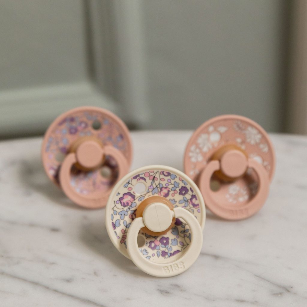 BIBS x LIBERTY je exkluzívna kolekcia najobľúbenejších BIBS produktov s potlačou Liberty. Liberty inšpiruje svet svojou výstrednosťou, nadčasovou eleganciou a prepožičiava svoje originálne vzory luxusným módnym značkám už od roku 1875. V kolekcii BIBS x LIBERTY sme spojili svoje sily, aby sme Vám priniesli produkty, ktoré oslavujú dedičstvo oboch značiek. Obľúbené BIBS Colour cumlíky teraz aj v ortodontických verziách – symetrický tvar alebo anatomický tvar. BIBS dobývajú celý svet. Jednoduché a štýlové. Sacia časť je vyrobená zo 100%25 prírodného kaučuku, ktorý je mimoriadne pružný a mäkký zároveň, odolný voči vytvoreniu trhlín a odštiepeniu malých kúskov. Cumlík je navrhnutý tak, aby nedráždil citlivú pokožku bábätka. Okrúhly krúžok s vetracími otvormi má klenutý tvar, takmer vôbec sa nedotýka pokožky okolo úst, tá preto zostáva kľudná, bez otlačkov a podráždení. Vďaka mäkučkému kaučuku a zabudovanému vzduchovému ventilu dieťa cumlík ľahko stláča a formuje v ústach, čím je zachovaný prirodzený vývin podnebia, ďasien a zúbkov detí. Prečo deti aj rodičia obľubujú cumlíky BIBS Colour? Extra ľahučký. Vďaka špeciálnemu klenutému tvaru krúžku je minimalizovaný dotyk cumlíka s pokožkou a nevznikajú otlačky a podráždenia. Guľatý / čerešničkový tvar sacej časti si často obľúbia aj deti, ktoré odmietajú iné tvary cumlíka. Dieťa saje len 100%25 prírodný bezpečný materiál – kaučuk vyrobený z miazgy stromu Hevea. Výnimočná chuť prírodného kaučuku, deti ho prirodzene uprednostňujú pred syntetickými materiálmi. Štýlový dizajn v mnohých farebných prevedeniach. Vyrobené v EU. Zloženie: Sacia časť: 100%25 prírodný kaučuk Ostatné časti: polypropylén (PP) potravinárskej kvality. Bez BPA, PVC, ftalátov a iných škodlivých látok. Vyrobené v Dánsku. V súlade s európskym štandardom EN 1400+A2. Veľkosti: BIBS x LIBERTY Colour symetrické cumlíky sú k dispozícii v 2 veľkostiach: Veľkosť 1: 0-6 mesiacov. Veľkosť 2: 6-18 mesiacov. Vekové odporúčanie veľkostí je len orientačné, každé dieťa môže mať iné potreby a preferencie.