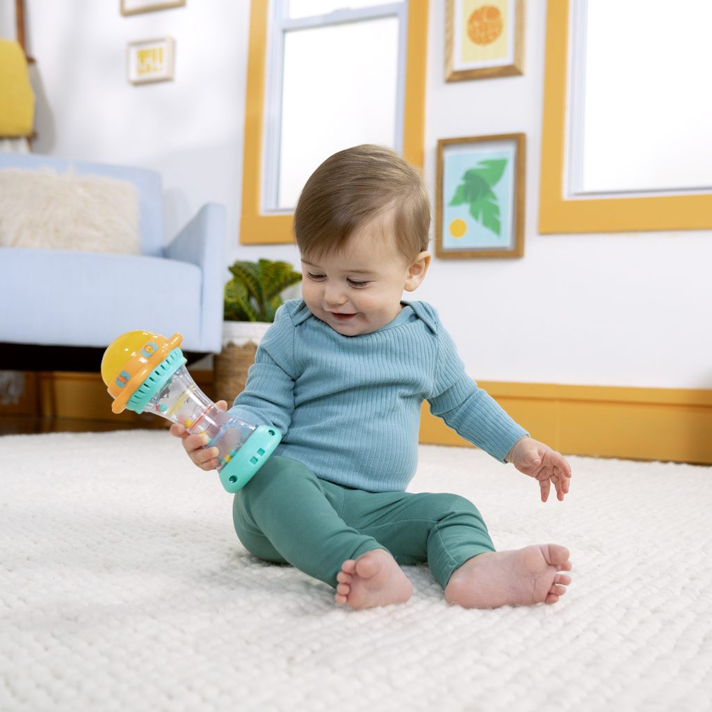 Zažij zářivou radost s hračkou Just for Sun od Bright Starts! Svítící hračka zabaví miminko veselými světly, zvuky zvířátek a chrastícími kuličkami. Otáčej sluneční kopuli, která svítí, a objev více než 30 melodií a zvuků – od mňoukání, přes rýlení až po kvákání a další. Při potřesení se kuličky uvnitř rozkutálejí jako kapky deště, čímž dítě získává další vizuální i zvukovou stimulaci. Spodní strana hračky skrývá zrcátko, které podporuje vnímání vlastního odrazu a sebeobjevování. Tato interaktivní hračka pomáhá dětem pochopit princip příčiny a následku a je ideálním společníkem na doma i na cesty. Perfektní dárek k oslavě narození, Vánoce či narozeniny! Vlastnosti: - Zábavná hračka se světly, zvuky zvířátek a chrastícími kuličkami - Otoč svítící sluníčko a objev 30+ zvuků (kočka, medvěd, žába, opice, ptáček, lev) - Potřes hračkou a sleduj, jak kuličky padají jako kapky deště - Spodní zrcátko pro podporu sebeuvědomění a vizuální stimulace - Podporuje smyslový vývoj a učení se příčiny a následku - Přenosný design vhodný i na cesty (vejde se do většiny tašek na pleny) - Vhodné pro děti od 6 měsíců - Vyžaduje 2x AAA baterii (součástí balení je baterie pro demo verzi, doporučuje se vyměnit po koupi) Materiál: – 90% plast a 10% kov. Věkové rozpětí: 6 – 36 měsíců Rozměry produktu: 17,7 cm x 9,7 cm x 9,7 cm Důležité: Před předáním výrobku dítěti odstraňte veškerý obal a upevňovací prvky. Tento obal a návod k použití si uschovejte pro budoucí použití – obsahují důležité informace. V rámci neustálého procesu zlepšování a inovace naše výrobky průběžně aktualizujeme. Adresa dodavatele: KIDS2 EUROPE BV 5 Keizersgracht 287, 1016 ED Amsterdam, Netherlands; +31 20 241 0934.