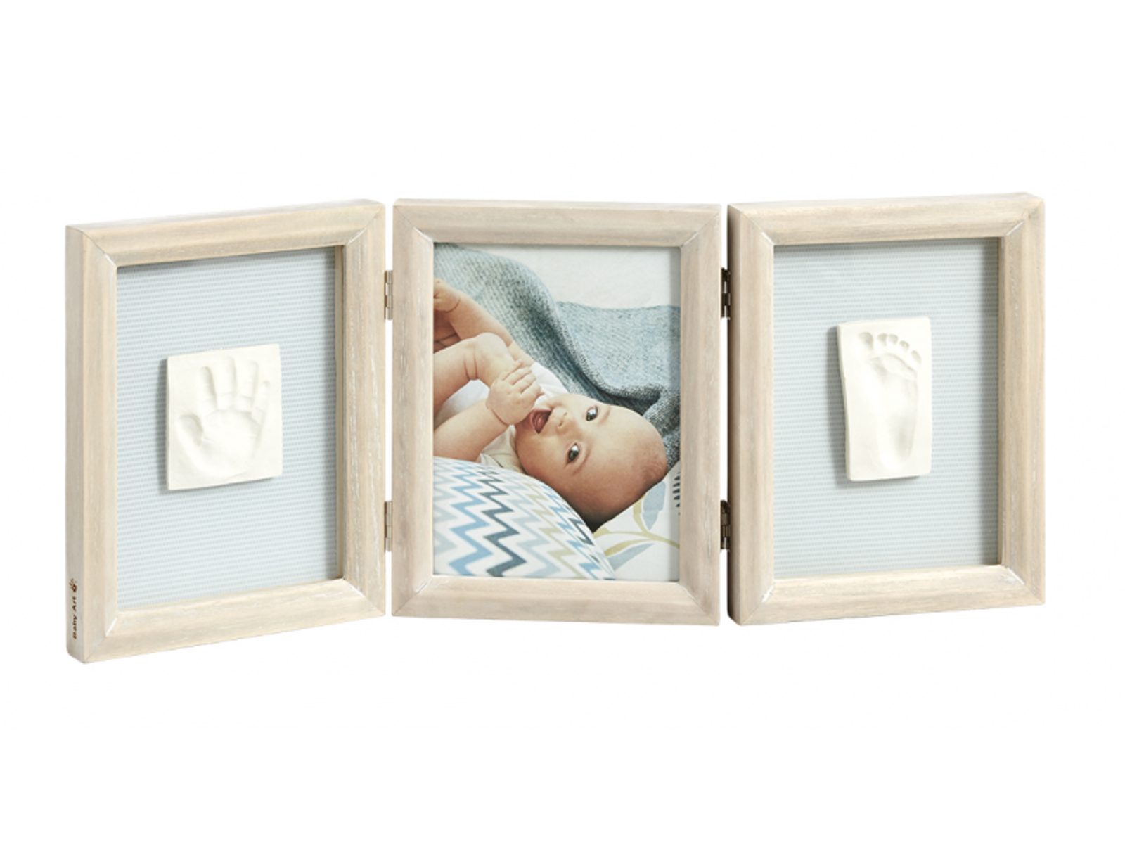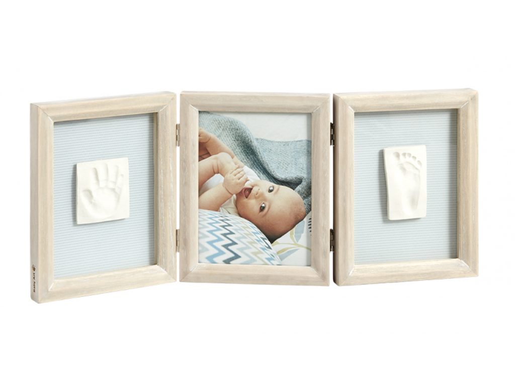 Dřevěný rámeček Baby Art My Baby Touch nabízí tři oddělené prostory pro fotografii a otisk ručičky a nožičky Vašeho miminka. Vyrobte si krásnou dekoraci, která vám zároveň pomůže uchovat vzpomínky na krásné období po narození vašeho dítěte. Použití dle přiloženého návodu je jednoduché, rychlé a bez nepořádku. Balení obsahuje rámeček a vše, co potřebujete k výrobě otisku. Výrobek je dermatologicky testován a je pro vaše dítě 100% zdravotně nezávadný.