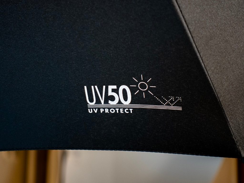 Slunečník byl vylepšen o vychytávku UV 50+ ve formě loga UV, které při vystavení slunečnímu záření mění barvu. Logo se mění z šedé, přes světle fialovou až po tmavě fialovou. Čím více UV záření, tím je logo tmavší.