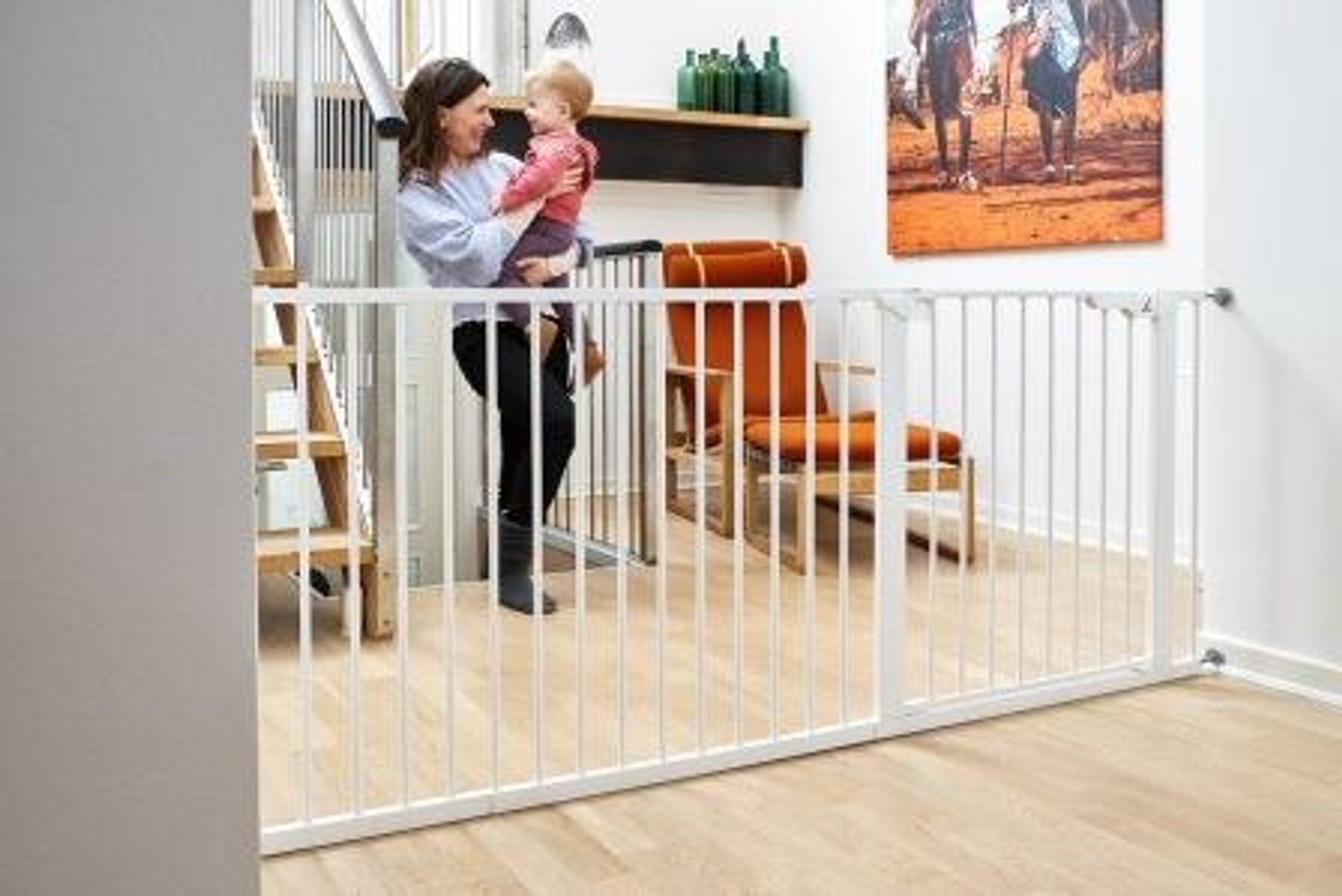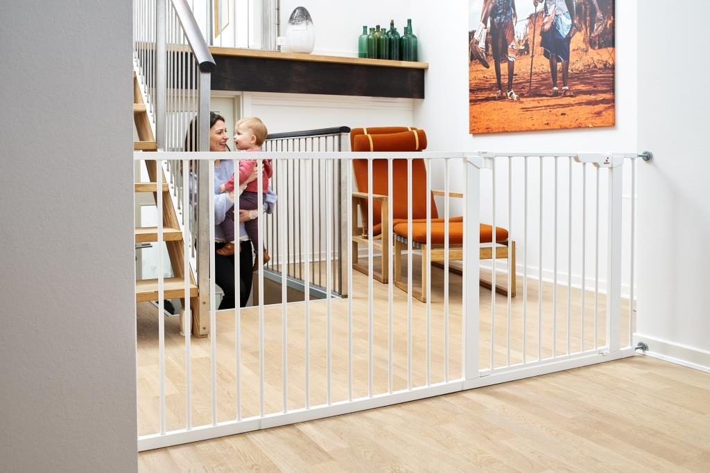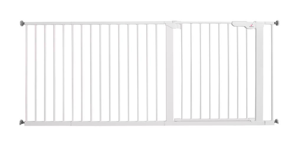 Parametry: Upevnění: tlakové Materiál: kov Barva: bílá Rozměr dvířek 56 cm. Výška 73cm. Odpovídá nejnovější evropské normě EN1930:2011 a ASTF1004 Vyrobeno v Dánsku. Vhodné pro děti do 24 měsíců. Hmotnost včetně krabice 9,2 kg.
