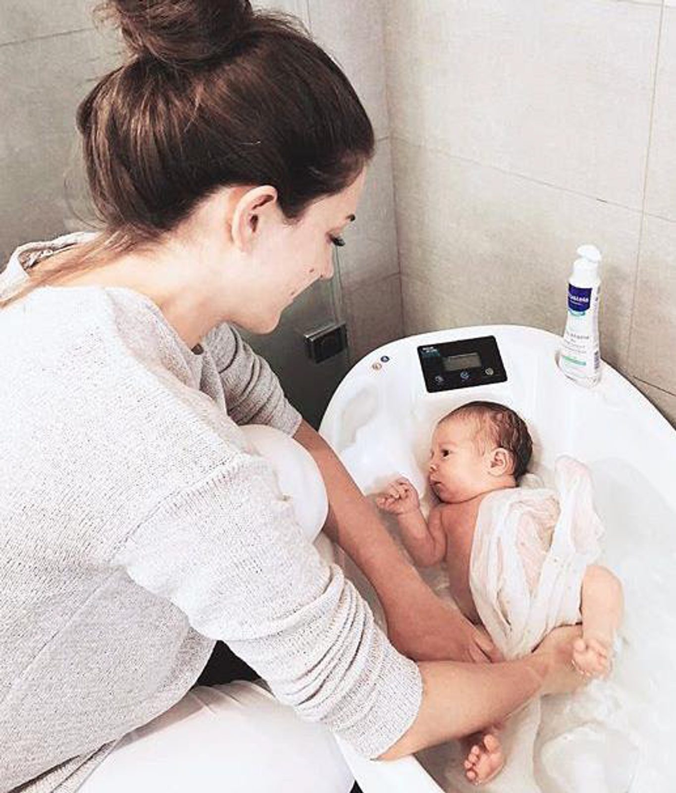 Digitální vanička pro děti 3v1 s integrovanou váhou a teploměrem pro měření teploty vody.