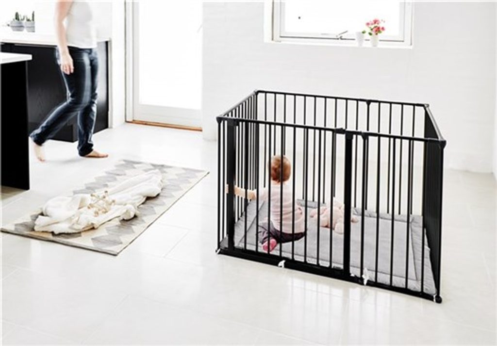 Balení obsahuje měkkou (prací na 40°C) hrací matraci s vysokými okraji. Certifikace Öko-tex. materiál 100% bavlna, náplň z netkané textilie 100% polyester. - Ohyby jsou flexibilní, proto mohou být všechny díly použity mnoha různými způsoby. Pokud dítě už nějakou dobu ohrádku nepoužívá, je možné ji snadno přeměnit na bezpečnostní bariéru, která se skvěle hodí okolo krbu, do širokých a nepravidelných dveří a schodišť nebo jako rozdělovač pokoje. Může být prodloužena libovolným počtem velkých (72cm) a malých(33cm) dílů, které se dodávají samostatně.
