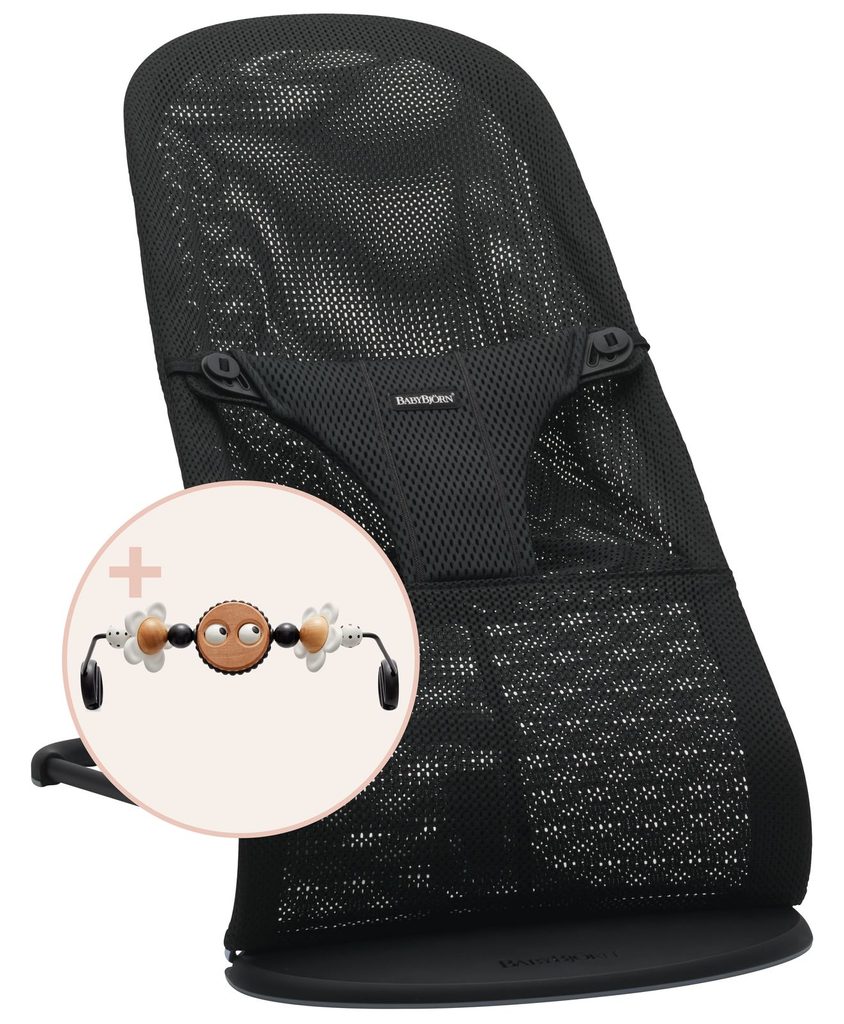 Babybjörn Lehátko Bouncer Bliss Black mesh s hračkou Googly Eyes Black / White