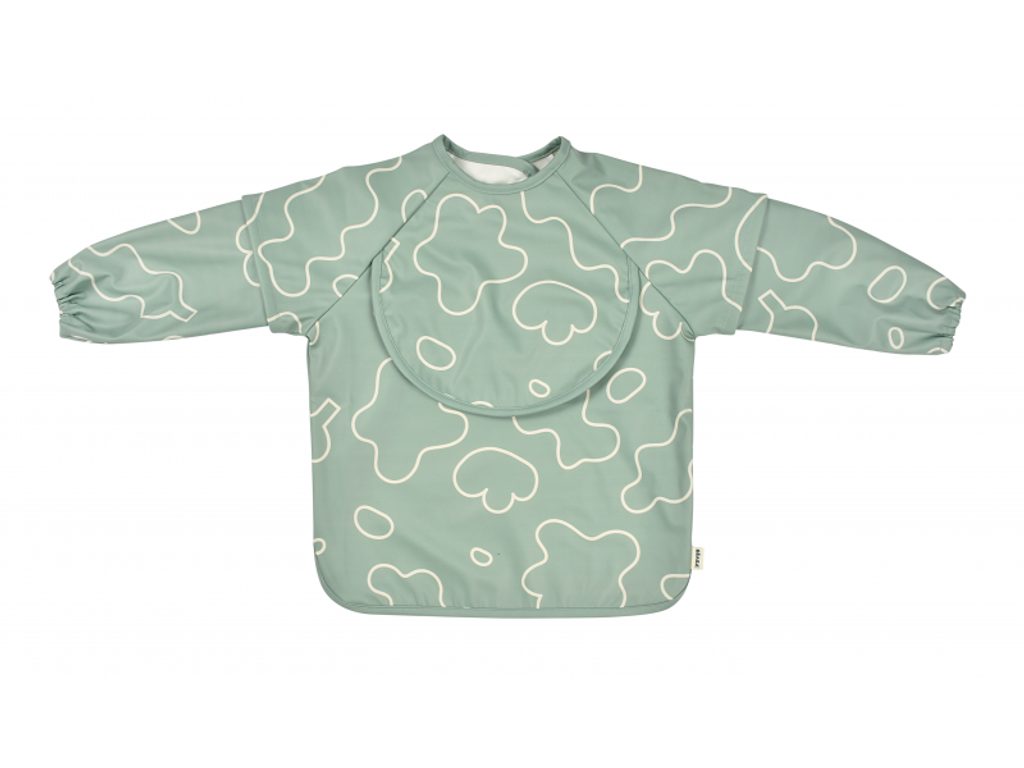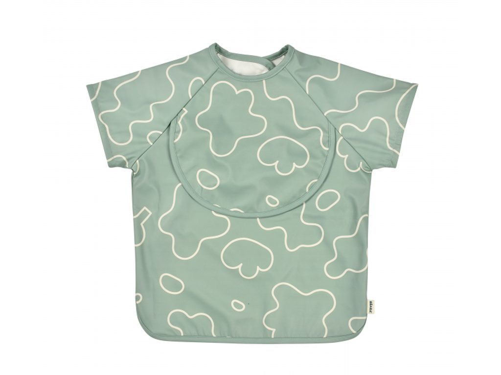 Bryndák s odnímatelnými rukávy chrání dětské oblečení při stolování i výtvarných aktivitách. Rukávy lze snadno oddělit i znovu přidělat. Rozkládací kapsa na přednní straně pomáhá zachytávat drobečky i kapky při dětském stolování, když kapsu např. při malování nepotřebujete, stačí ji nechat složenou. Nastavitelné zapínání na druky za krkem umožňuje snadné oblékání i přizpůsobení bryndáku velikosti dítěte. Elastické zakončení rukávů poskytuje pohodlí při nošení. Bryndák je vyroben z příjemného, měkkého materiálu, který při znečištění stačí otřít vlhkou houbičkou a je možné jej i prát v pračce. Vhodné pro děti od 4 měsíců do 4 let.