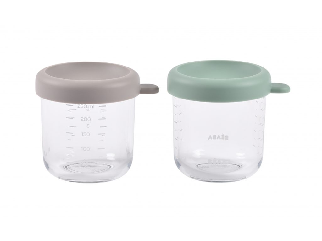 Beaba Kelímky na jídlo skleněné 2x 250 ml Green Grey