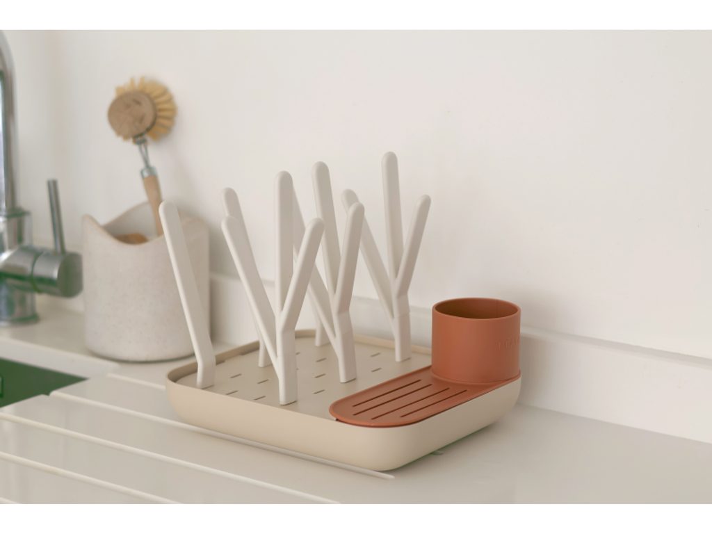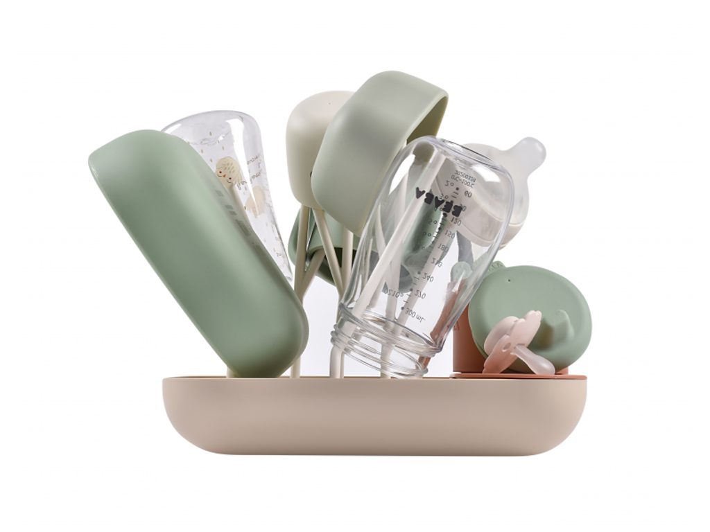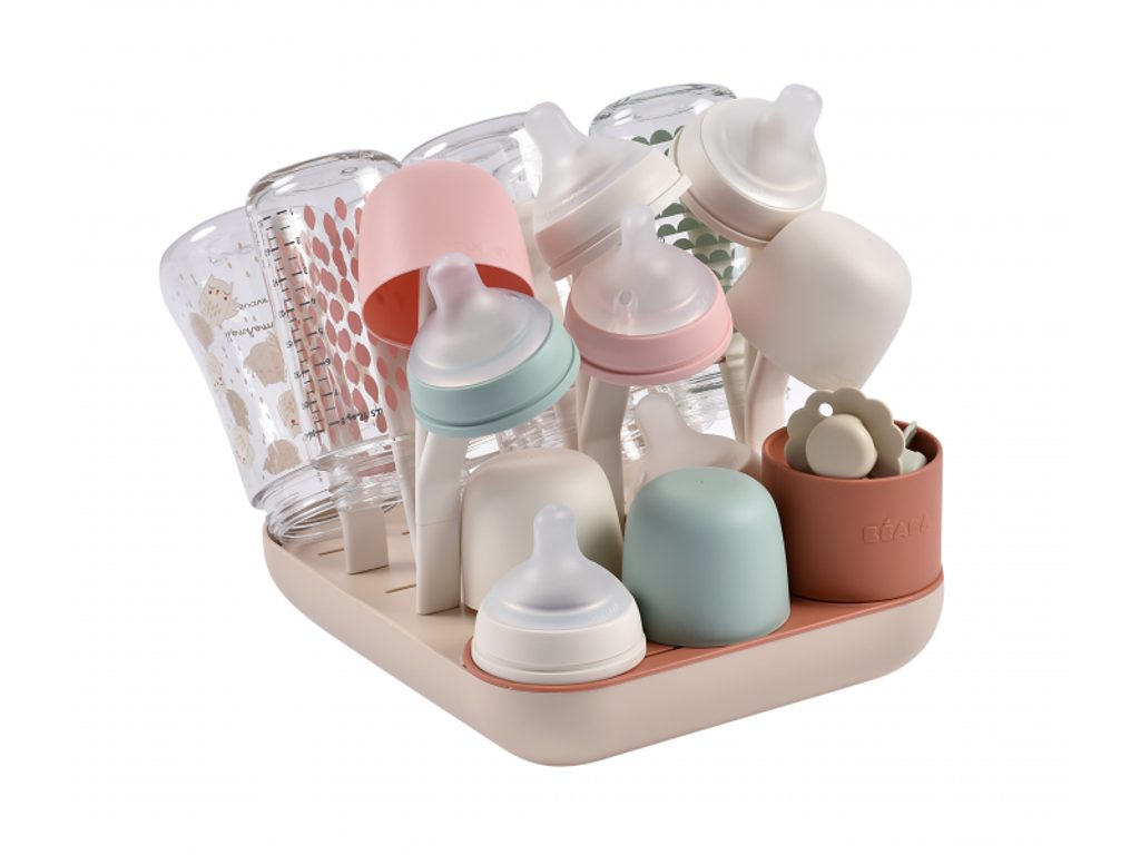Variabilní stojan Beaba na sušení kojeneckých lahví, hrnků, misek, lžiček a doplňků. Stojan má vyjímatelné držáky a umožňuje tak přizpůsobit jeho uspořádání dle typu a velikosti nádobí, které na stojan potřebujete umístit. Odnímatelná základna usnadňuje údržbu stojanu a zároveň slouží pro uložení jednotlivých součástí stojanu, když jej právě nepoužíváte. Stojan má kapacitu až 6 kojeneckých lahví a jejich příslušenství. Variabilní uspořádání umožňuje jeho použití pro jakékoli dětské nádobí.