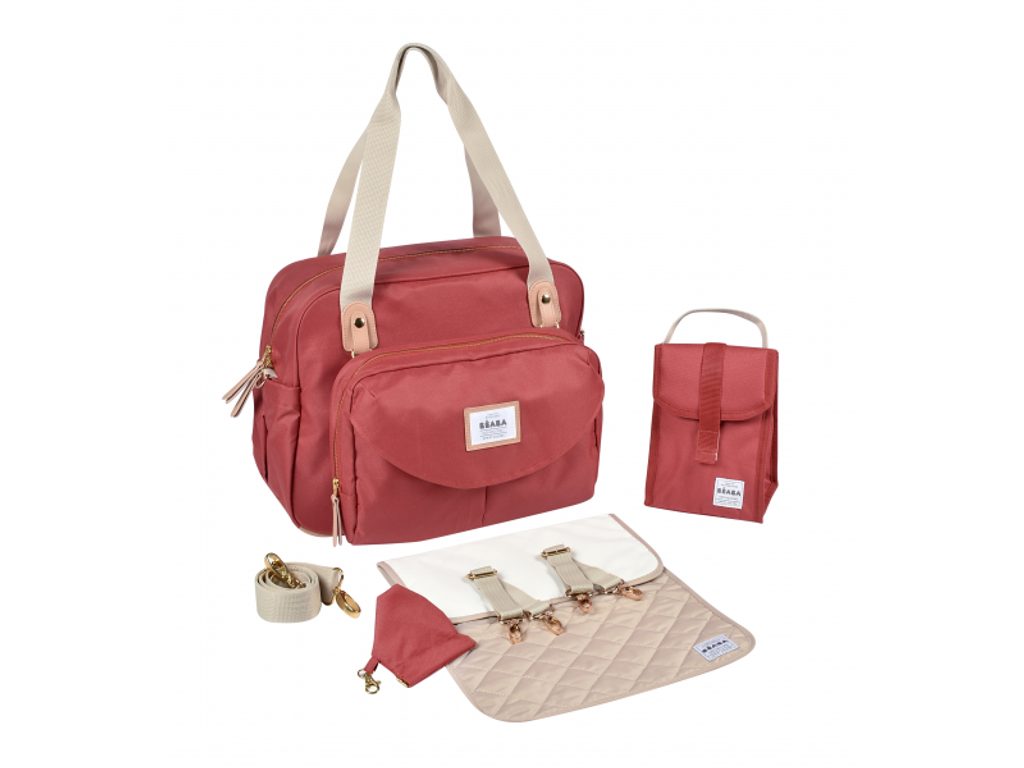 Prostorná přebalovací taška 2v1 Beaba Geneva vám usnadní a zpříjemní každodenní cestování s miminkem. Je navržena tak, aby byla maximálně variabilní a praktická. V přední části tašky se nachází oddělitelné pouzdro, ideální pro ukládání peněženky, mobilu, klíčů a dalších drobností. Velký vnitřní prostor s několika kapsami umožňuje přehledné uspořádání všech nezbytností pro dítě. Součástí tašky je i samostatná termoizolační taška na dětské jídlo a nápoje, přebalovací podložka, antibakteriální pouzdro na dudlík a dva úchyty pro zavěšení na madlo kočárku. Ramenní popruh s polstrováním a držadla pro nošení v ruce poskytují pohodlí při přenášení. Na zadní straně tašky je praktický úchyt pro zavěšení na vysunovací rukojeť kufříku na kolečkách. Taška je vyrobena z odolného a voděodolného materiálu, který zajišťuje dlouhou životnost.