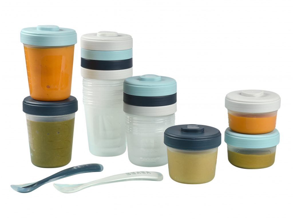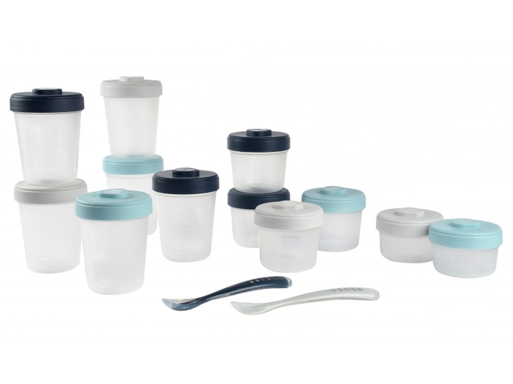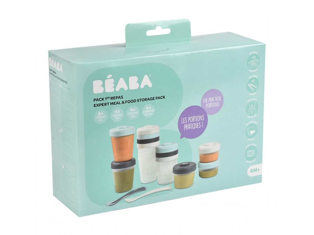 Sada kelímků Beaba na dětskou stravu z vysoce kvalitního polypropylenu s hermeticky uzavíratelným víčkem. Jídlo v kelímcích lze zamrazit či uložit do lednice a následně ohřívat v mikrovlnné troubě, ohřívačce nebo v Babycooku. Speciálně navržené víčko a dno kelímku umožňuje kelímky na sebe zacvaknout, což usnadňuje jejich uložení do lednice či mrazáku. Kelímky se dají popsat pro rychlou orientaci v lednici či mrazáku. Ryska v mililitrech slouží ke pro snadnému určení objemu příkrmu. Silikonové lžičky pro první samostatné krmení mají ideální tvar pro dětská ústa. Tvar držadla usnadňuje dítěti držení lžičky. Lžička má na spodní straně rukojeti opěrku pro možnost hygienického odložení lžičky na stůl. Možno mýt v myčce. Zdravotně nezávadný materiál neobsahuje BPA, BPF, BPS, PVC ani ftaláty a je tak vhodný pro bezpečné uchovávání dětské stravy. Balení obsahuje 2x kelímek o objemu 90 ml, 4x kelímek o objemu 150 ml, 6x kelímek o objemu 250 ml a 2 silikonové lžičky.