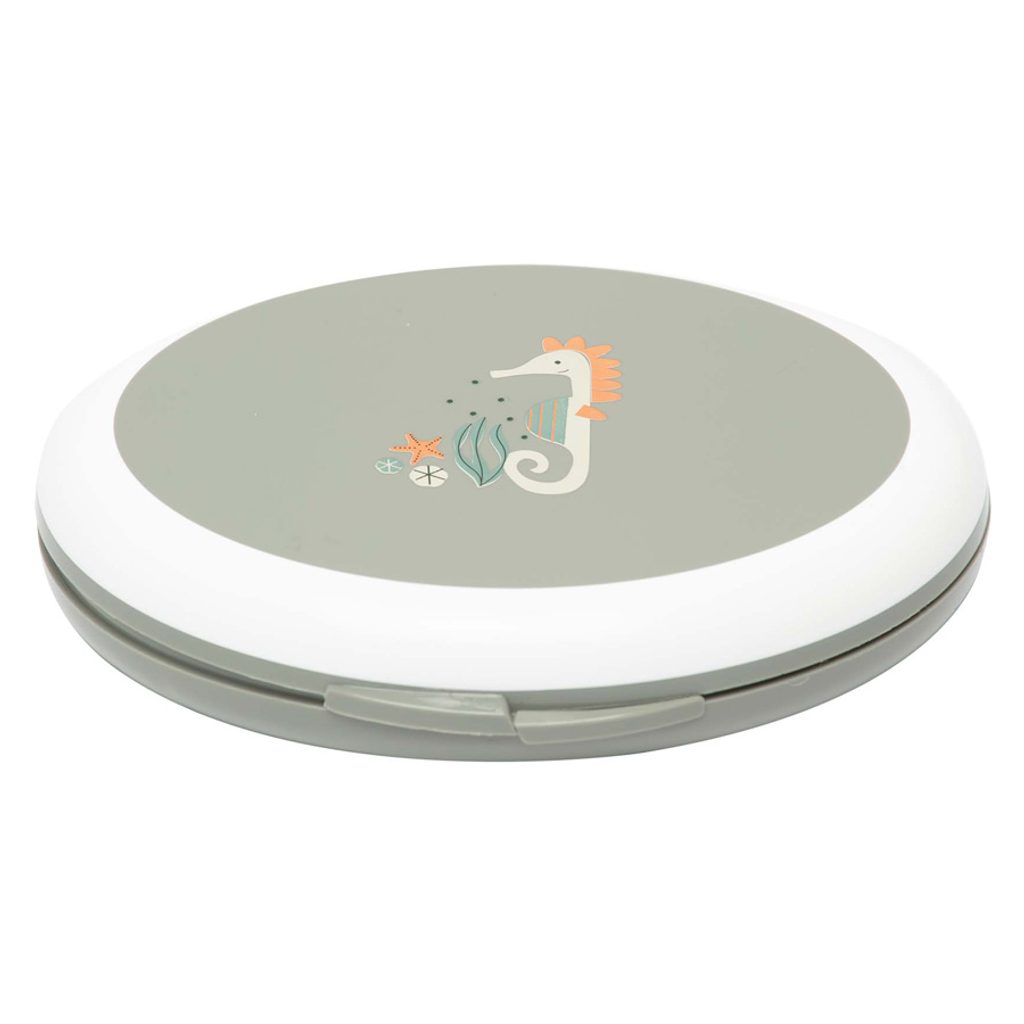 Obsahuje nůžky se zakulacenými konci, pilníček na nehty a také kleštičky na nehty. Vše je vyrobeno z nerezavějící ušlechtilé oceli. Krabička s výrazným motivem na víčku chrání před prachem a pomáhá udržovat manikúru v čistotě. Ale i přesto před každým použitím jednotlivé nástroje pečlivě očistěte a u novorozenců i desinfikujte roztokem lihu.