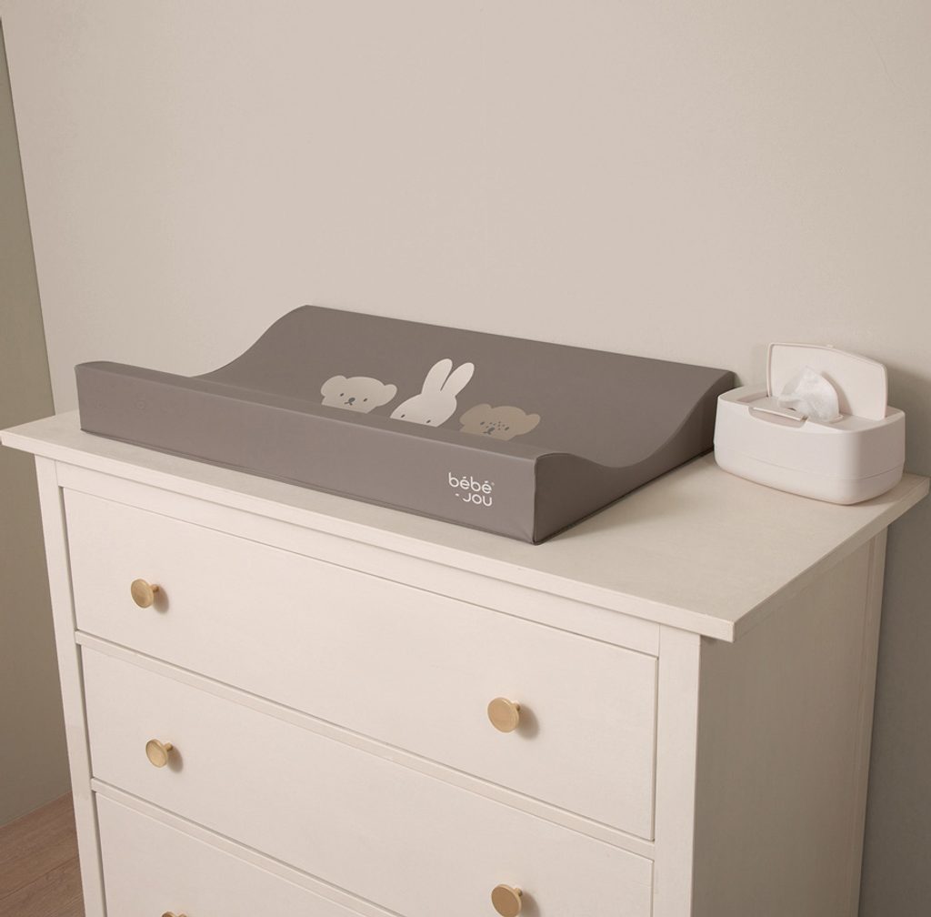 Přebalovací podložka Bébé-jou má pohodlnou velikost. Je vyrobena z vysoce kvalitní polyetherové PU pěny s dlouhou životností. Tyto speciální vlastnosti zaručují, že je hlavička i krček dítěte obzvlášť dobře podepřen. Zaoblený tvar zajistí, že dítě leží pohodlně a bezpečné ve středu. Fólie a prodyšná pěna jsou vyrobeny z ekologicky šetrných materiálů a jsou bez škodlivých látek (Ftalátů). Certifikované Oeko Tex.