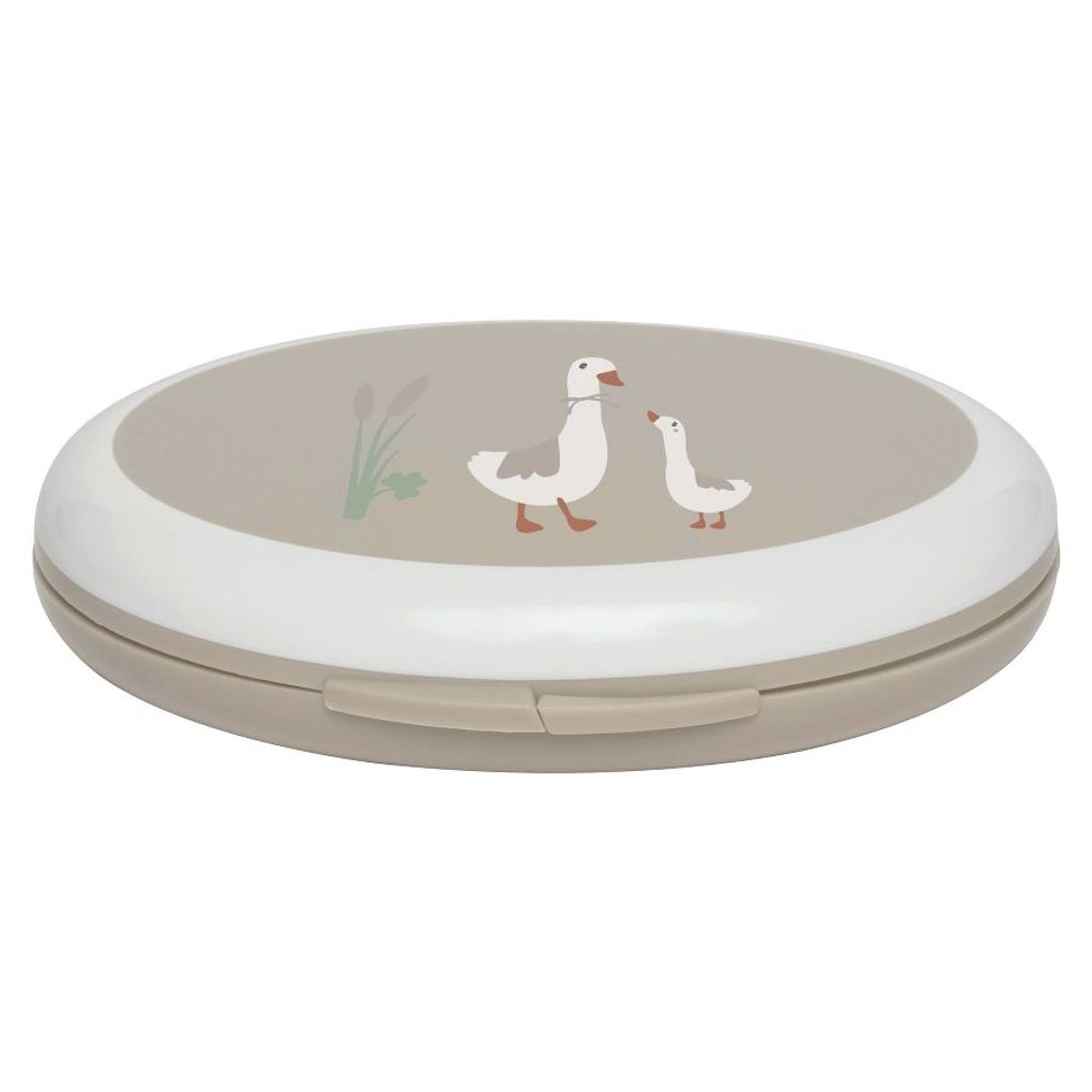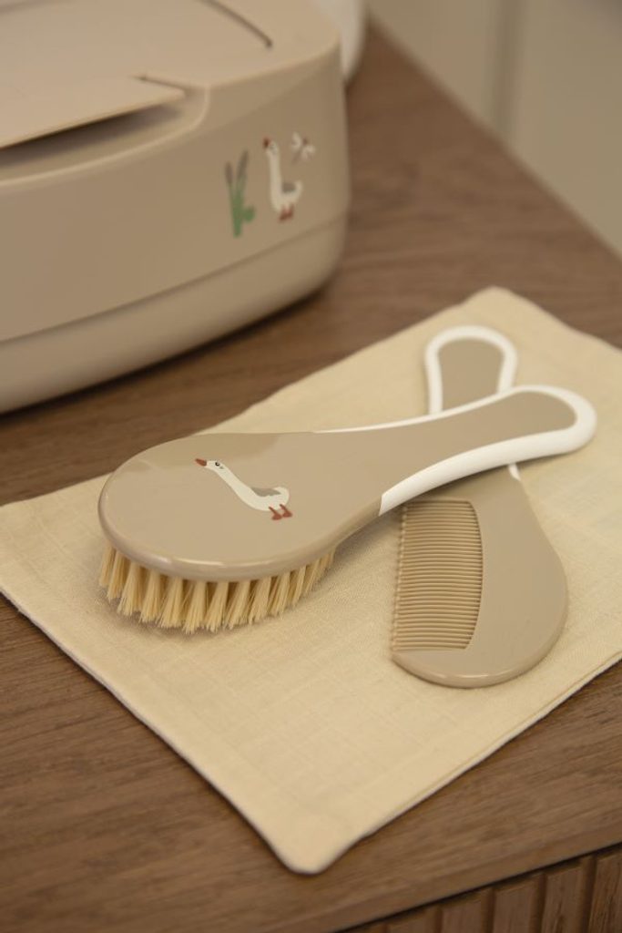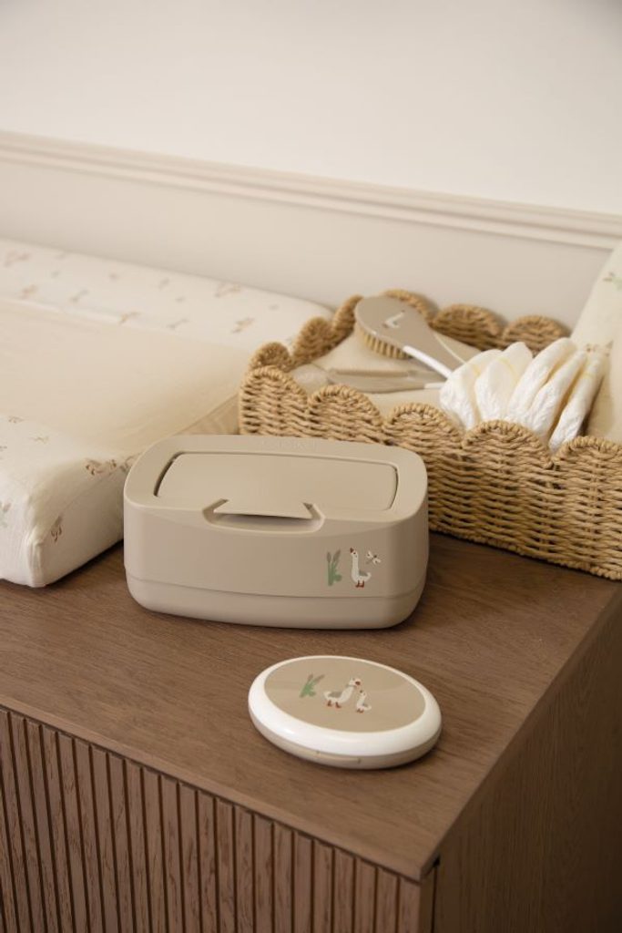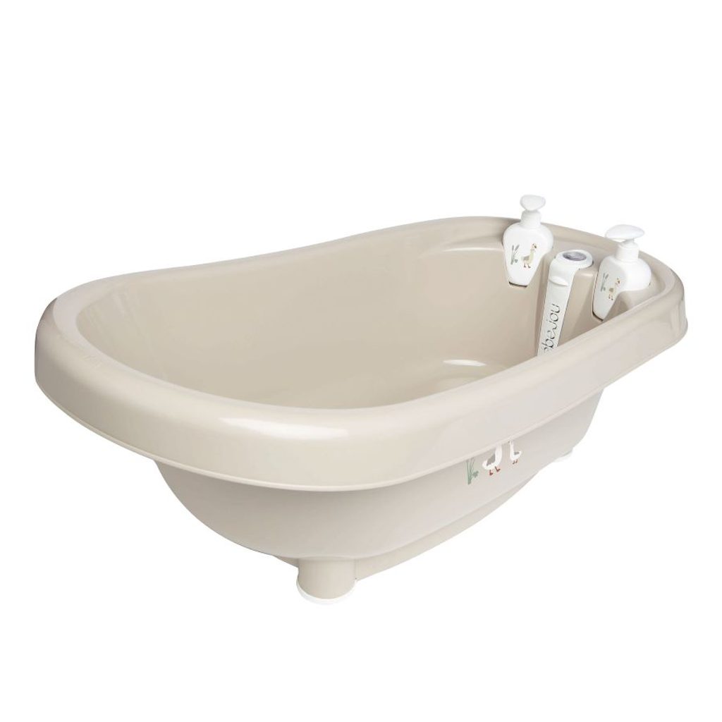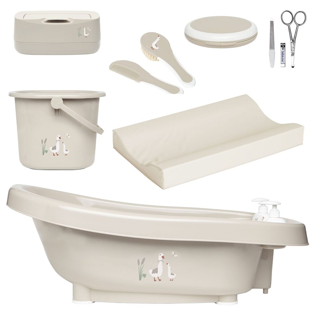 Set obsahuje: termovaničku, kyblík na pleny, sadu na manikúru, hřeben a kartáč, přebalovací podložku a box na vlhčené ubrousky. Součástí termovaničky je zabudovaný vanový teploměr, který je zároveň vanovou zátkou, dva dávkovače mýdla a šamponu,