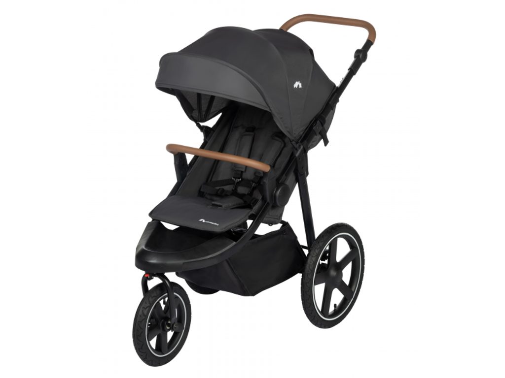 Velká nafukovací kola s kvalitním odpružením zvládnou i náročnější terény, zatímco prostorný sedák po směru jízdy poskytuje dítěti maximální pohodlí. Opěrku zad lze snadno nastavit až do rovné polohy, což je ideální pro přirozené spaní. Pro horké dny je opěrka vybavena větracím okénkem, které zajistí tepelný komfort.