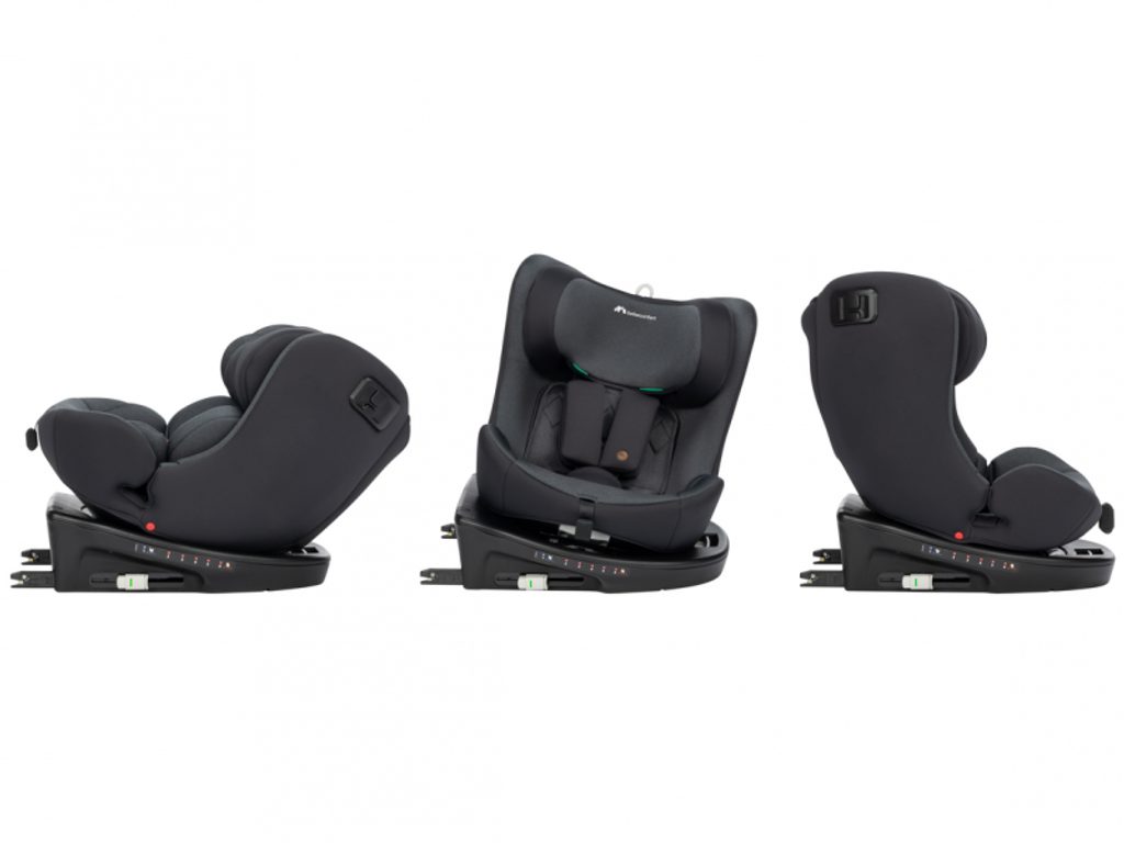 Mezi hlavní výhody patří unikátní otočná funkce 360°, která umožňuje snadné usazení dítěte do autosedačky bez námahy. Vizuální indikátor na základně zajišťuje správnou instalaci a minimalizuje riziko nesprávného upevnění. 5-bodový bezpečnostní pás s polstrovanými ramenními popruhy a Top Tether úchyt zajišťují vynikající stabilitu a bezpečnost.