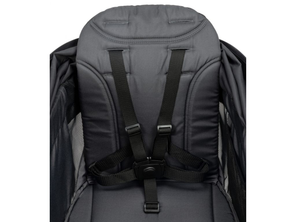 Bezpečnost na prvním místě: Kočárek je vybaven pětibodovými bezpečnostními pásy, které jsou nastavitelné podle věku dítěte. Ochranný pultík zabraňuje sklouznutí dítěte, a zajišťuje tak maximální bezpečnost.