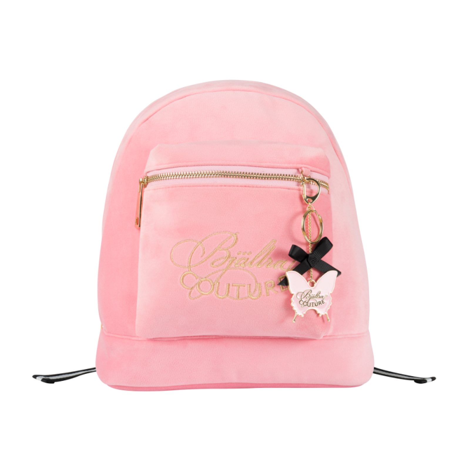 Tento módní "must have" batoh navržený společností Bjällra Couture je vyrobený z růžového sametu s detaily ze zlatého kovu a nastavitelnými ramenními popruhy, díky kterým se snadno přizpůsobí každé postavě a nabídne tak delší využití.