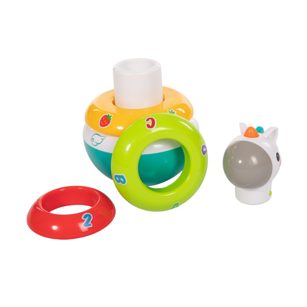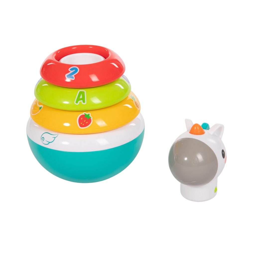 - hračka je tvořena kývající se základnou s kolíkem, 3 chrastícími, barevnými kroužky a hlavičkou Unicorna