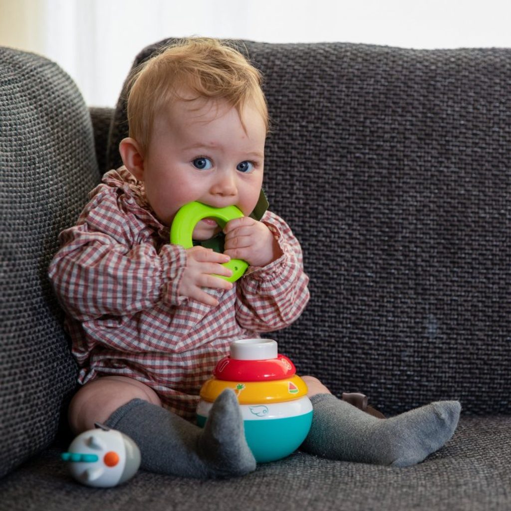 Tato úžasná plastová hračka rozvíjí hmat a koordinaci oko-ruka.
