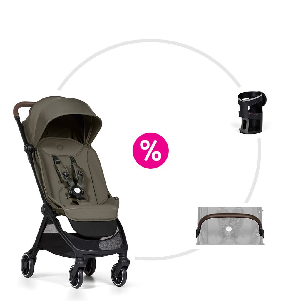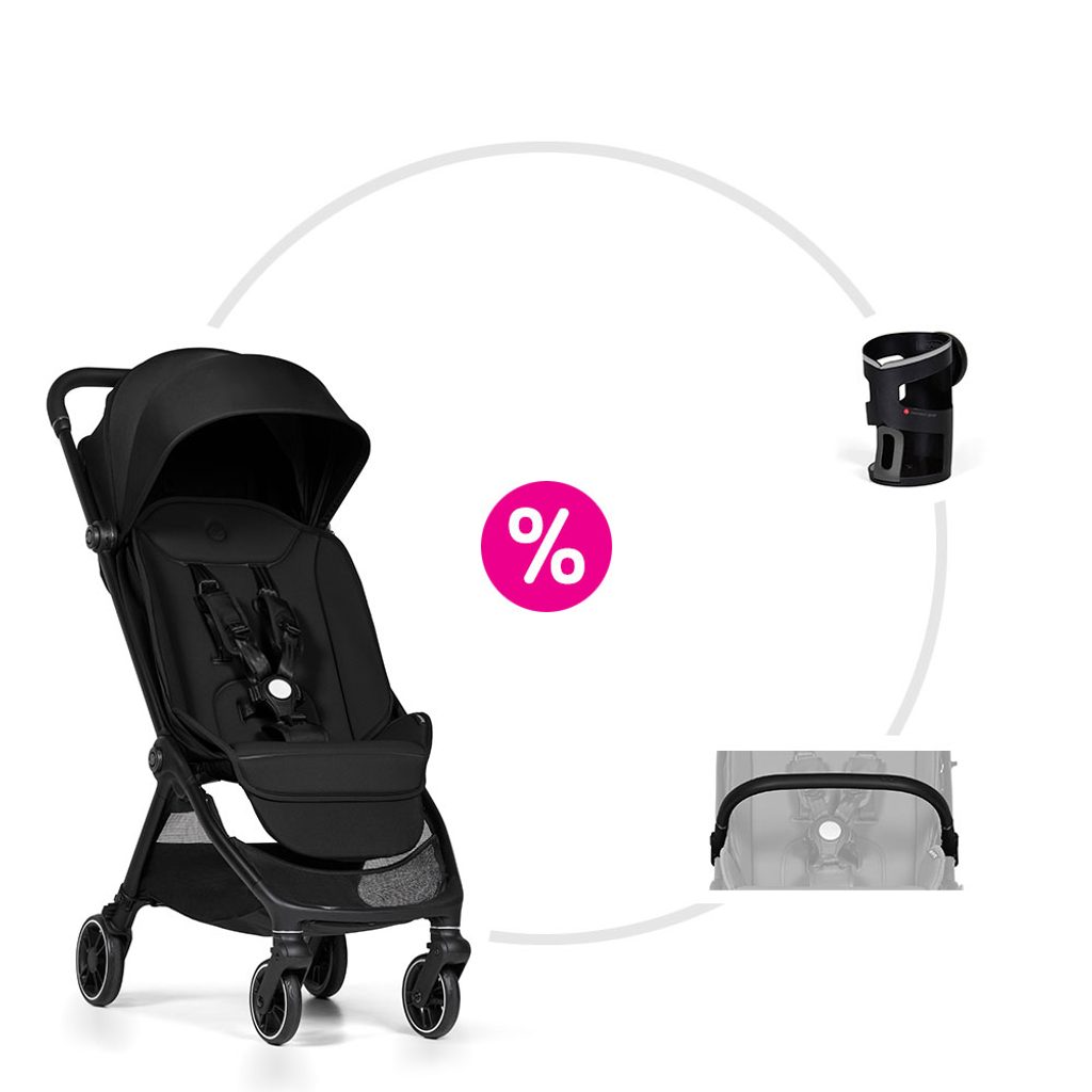Patentovaný systém Connect není jen marketingový pojem. Přiložíte doplněk, magnety ho samy navedou do správné polohy, automatický zámek cvakne – hotovo, během zlomku vteřiny. Právě tak funguje držák na nápoje i madlo před dítě, které jsou součástí tohoto setu. Bez šroubování, bez nářadí, bez zbytečné ztráty času. A jako bonus: stejný systém umožňuje propojit dva kočárky Connect Mini dohromady – unikátní řešení pro dvojčata nebo sourozence v kabinové velikosti.