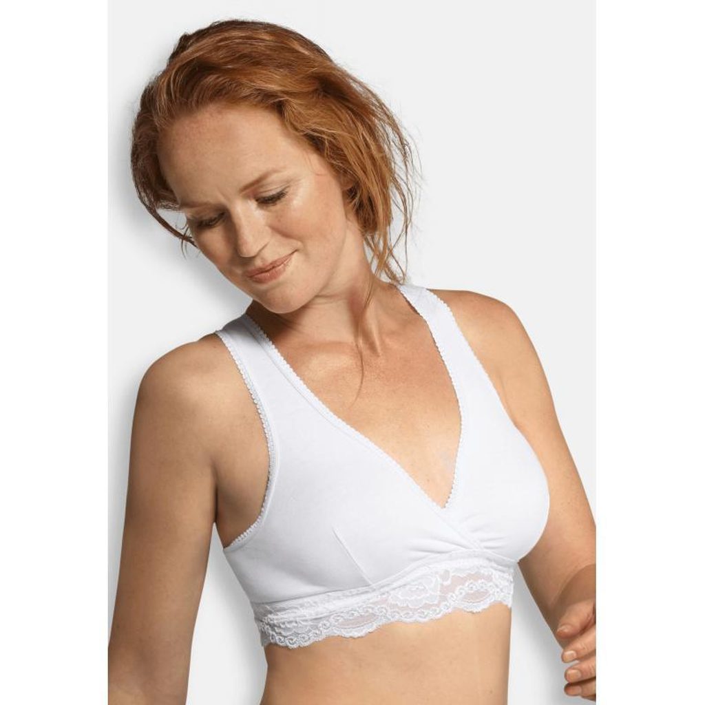 Elastická měkká krajka sleduje přirozené křivky vašeho těla a křížený střih umožňuje snadným odklopením pohodlné kojení.