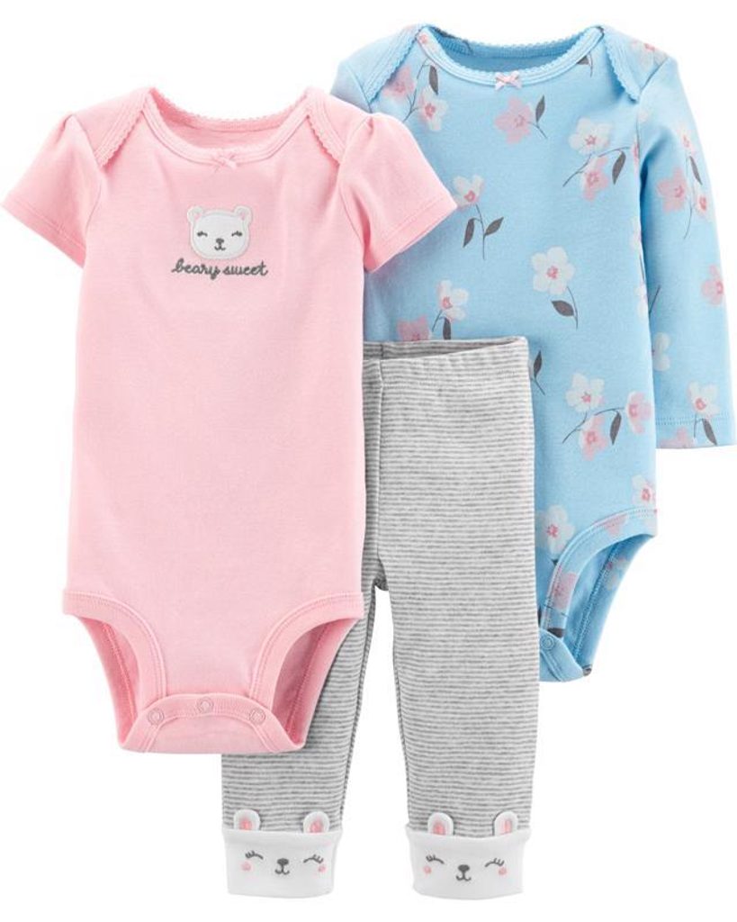 Všechny modely značky Carter's jsou vyrobeny ze super měkké bavlny a s množstvím lásky. 3-dílný set je velmi vhodný i do výbavičky dítěte. Nemusíte přemýšlet nad kombinací. Jednoduše stačí jen obléci. Všechny výrobky jsou navrženy tak, aby byly velmi pohodlné na nošení a v trendy barvách. Specifikace: - 3 kusy - body krátký rukáv - body dlouhý rukáv - kalhoty dlouhé - body mají překrytá ramena tzv. obálkový výstřih - body mají zpevněný výstřih, aby se neroztahoval používáním - oblékání děťátka je jednodušší - příjemně měkký materiál - komfortní na nošení - kalhoty dlouhé s aplikací na zadečku - patent na nohavicích je pružný, aby děťátko netlačil - dodávané na věšáku Materiálové složení: 100% bavlna. Údržba: Doporučujeme dodržovat prací symboly uvedené na etiketě výrobku.