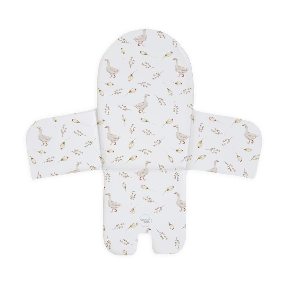 Měkká vložka do jídelní židličky je promyšleným řešením, které spojuje eleganci, pohodlí a bezpečnost. Speciálně profilovaná forma vložky je navržena tak, aby poskytovala optimální oporu pro děťátko a zlepšila pohodlí a bezpečnost během jídla nebo hry. Měkký, ale odolný materiál udrží batole v pohodlí a rodiče si zamilují snadné udržování vložky v čistotě. Vnější vrstva je vyrobena z certifikovaného materiálu s voděodolnými vlastnostmi pro snadné čištění.