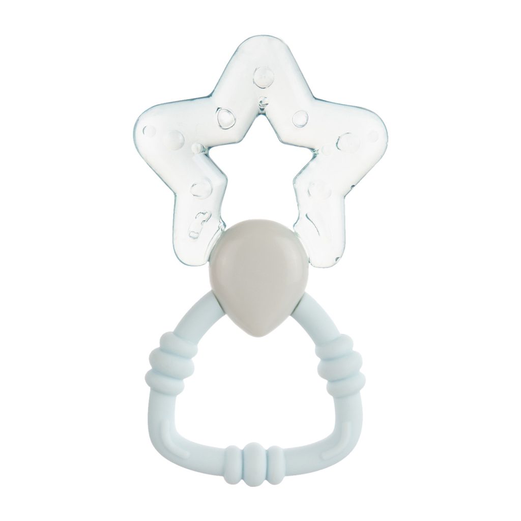 Chrastítko s chladícím kousátkem spojuje výhody chladícího kousátka a chrastítka. Kousátko se dobře drží v malých dětských ručičkách. Pomáhá tišit bolest dásní v období růstu zubů. Lze vychladit v chladničce.
