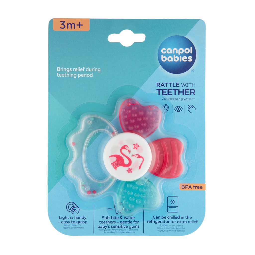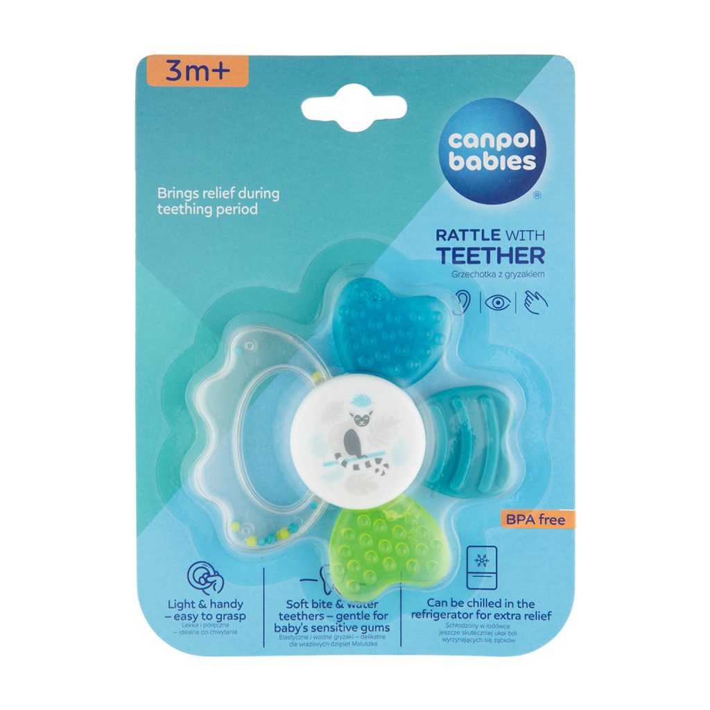 Chladící kousátko s chrastítkem je ideální pro období růstu zoubků a přináší úlevu při svědění dětských dásní. Navrženo pro děti od 3m+.