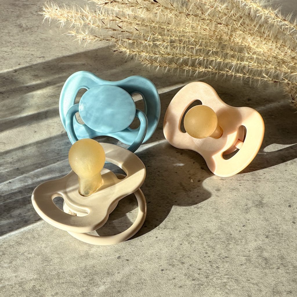 Kaučukový dudlík se špičkou kulatého tvaru v přírodních barvách z kolekce NUDE. Je vyroben z přírodního kaučuku, který je charakteristicky nažloutlý a matný.