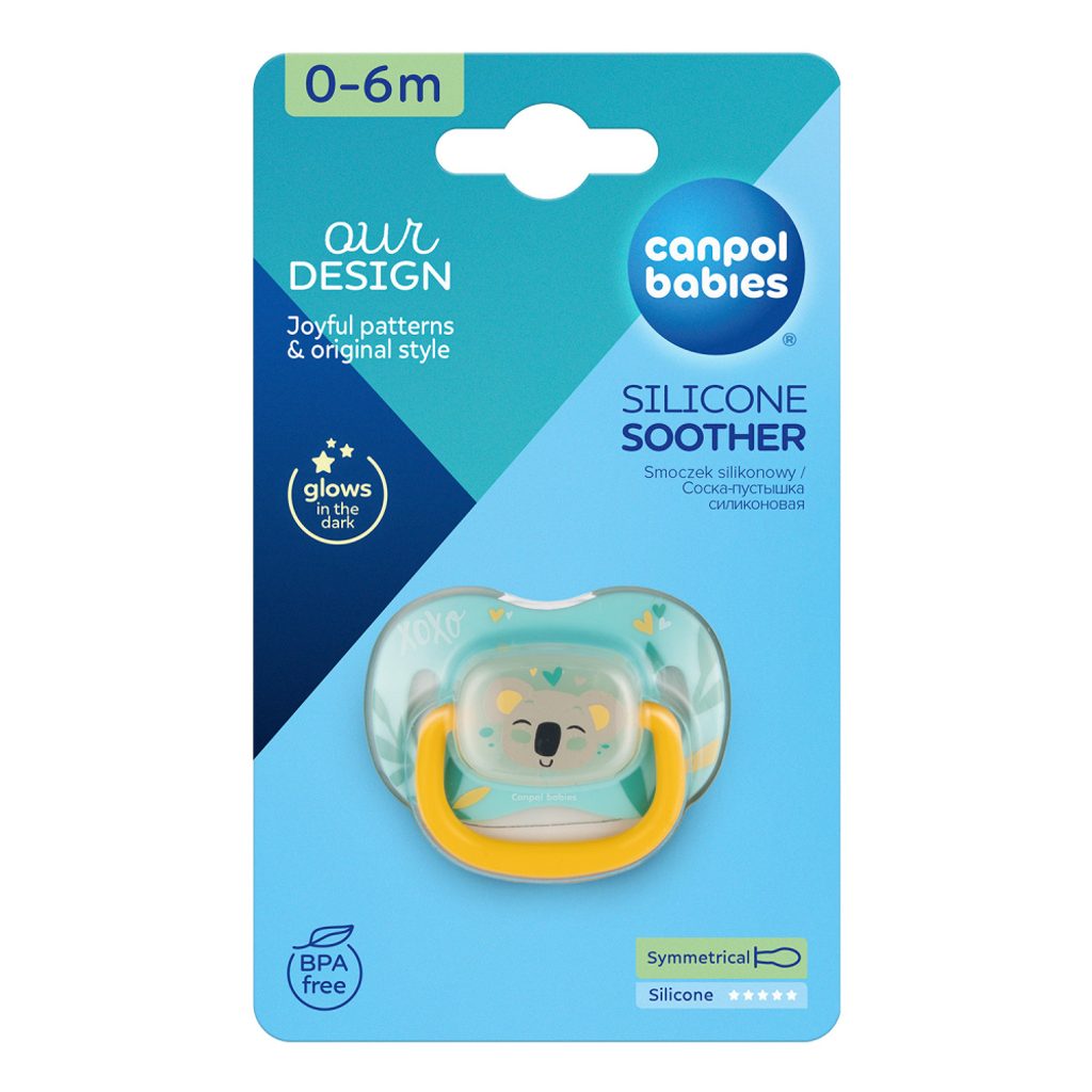 Canpol babies symetrický silikonový dudlík 0-6m EXOTIC ANIMALS (koala) je pevný a odolný vůči deformaci. Bez BPA. Tento dudlík je bezpečný a snadno se udržuje v čistotě – lze jej dezinfikovat ve vroucí vodě a ve sterilizátoru. Symetrický dudlík se dobře přizpůsobí ústům dítěte bez ohledu na způsob jeho umístění a jeho tvar je považován za nejfyziologickější, podporuje zachování přirozeného rytmu sání a správný vývoj řeči. Dudlík doporučený pro děti ve věku 0-6 měsíců. Canpol babies symetrický silikonový dudlík 0-6m EXOTIC ANIMALS (koala) je dostupný v několika jedinečných designech a různých velikostech – roste s dítětem.