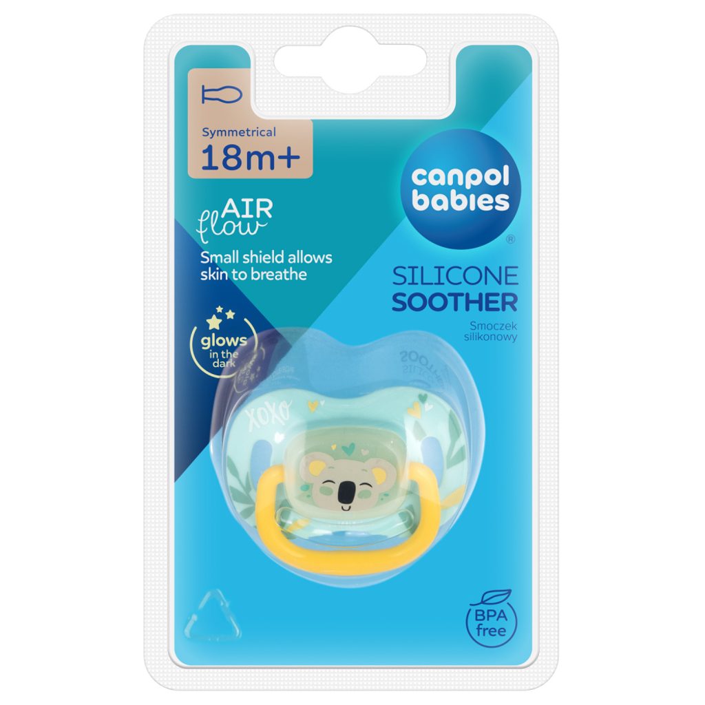 Canpol babies symetrický silikonový dudlík 18m+ EXOTIC ANIMALS (koala) je pevný a odolný vůči deformaci. Bez BPA. Tento dudlík je bezpečný a snadno se udržuje v čistotě – lze jej dezinfikovat ve vroucí vodě a ve sterilizátoru. Symetrický dudlík se dobře přizpůsobí ústům dítěte bez ohledu na způsob jeho umístění a jeho tvar je považován za nejfyziologickější, podporuje zachování přirozeného rytmu sání a správný vývoj řeči. Dudlík doporučený pro děti ve věku 18 měsíců a více. Canpol babies symetrický silikonový dudlík 18m+ EXOTIC ANIMALS (koala) je dostupný v několika jedinečných designech a různých velikostech – roste s dítětem.