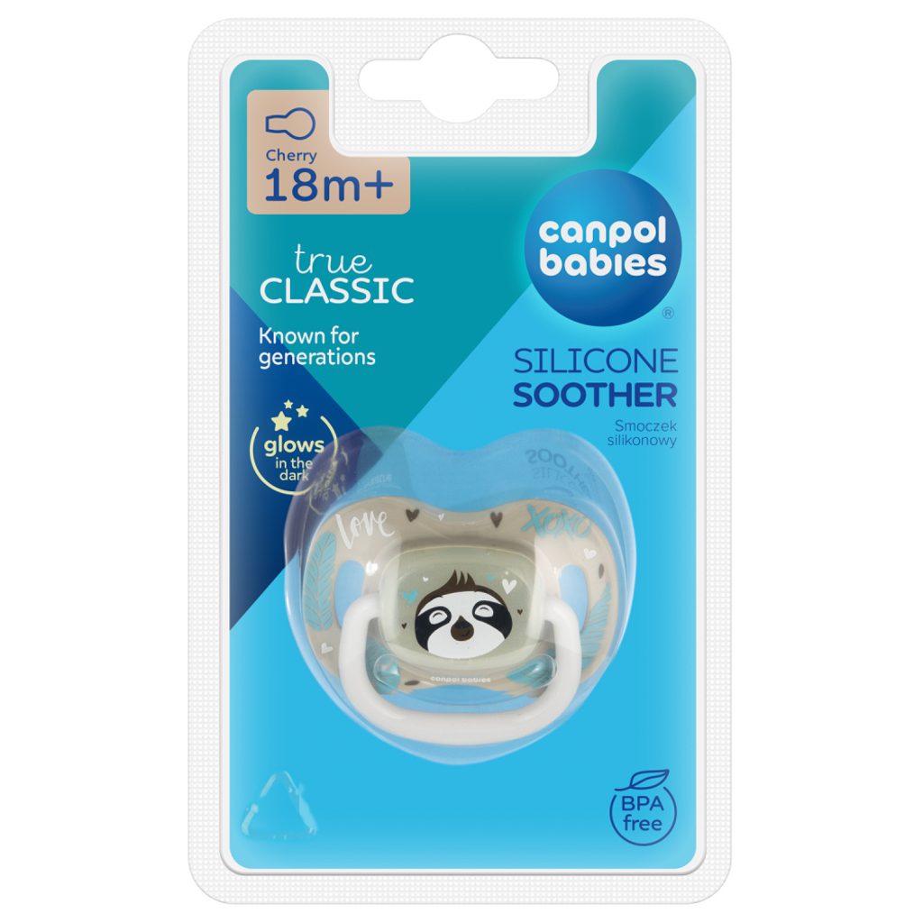Dudlík Canpol babies se silikonovou špičkou ve tvaru třešinky (kulatý tvar) vaše miminko uvolní a uklidní. Sací část je vyrobena ze 100% hypoalergenního silikonu.