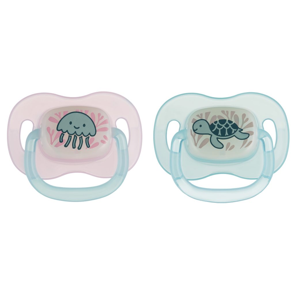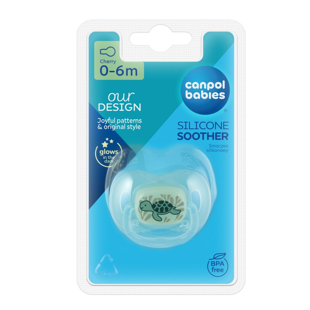Silikonový dudlík se špičkou kulatého tvaru z kolekce LOVE&SEA. Vyroben z vysoce kvalitního silikonu bez chuti a zápachu. Štítek dudlíku svítící ve tmě.