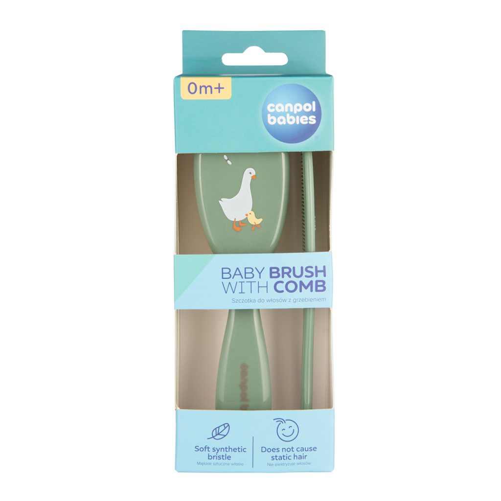 Sada pro péči o vlasy obsahuje hřeben se zakulacenými zoubky a kartáč s měkkým umělým vlasem. Kartáč jemně masíruje pokožku hlavy dítěte, podporuje její prokrvení a tak posiluje vlasy.
