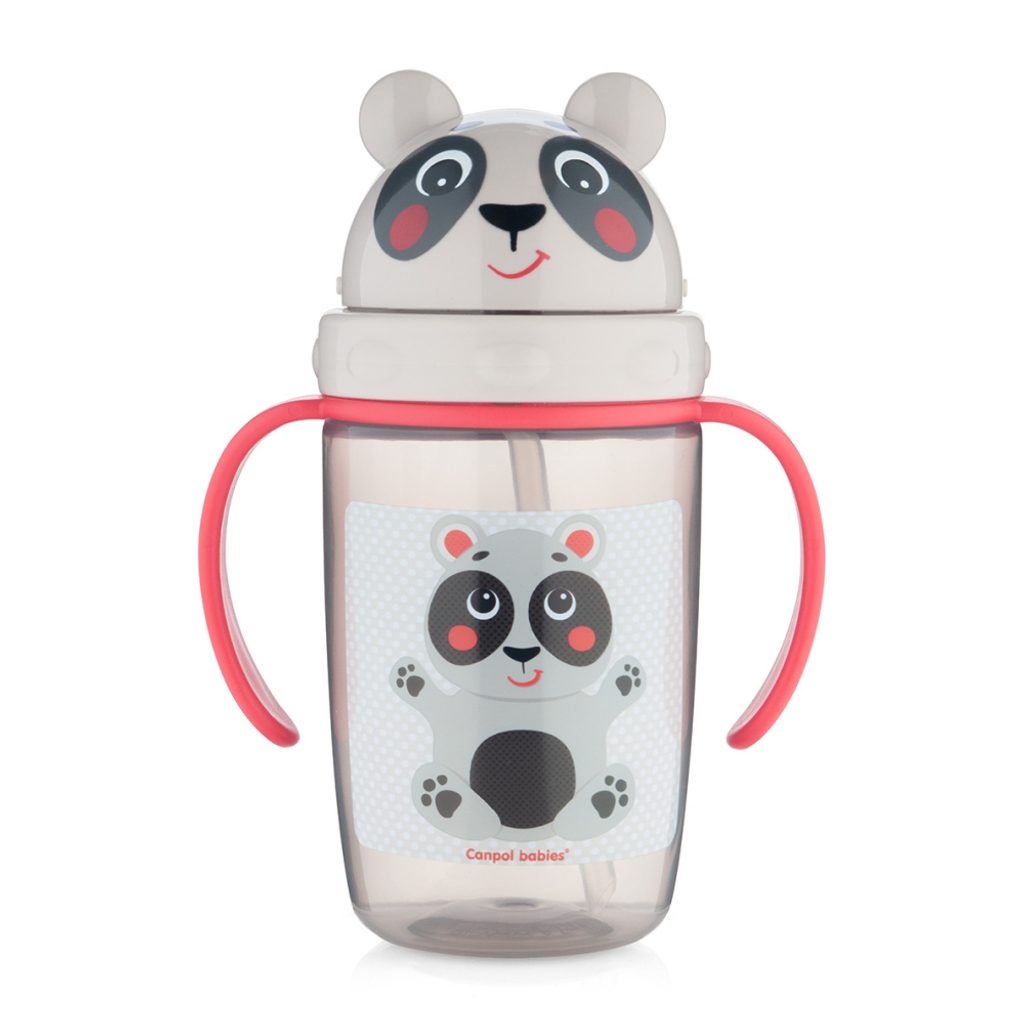 Praktická barevná láhev se silikonovou slámkou a potiskem v designu Koaly a s víčkem ve tvaru hlavičky s oušky. Pro děti starší 9-ti měsíců, které již umí samy pít. Ideální na cestování nebo procházky. Praktické rukojeti padnou do dětských ruček. Transparentní pro lepší kontrolu vypitého množství. Silikonová slámka je spojena s plastovou slámkou, která vede na dno láhve a usnadňuje vypití nápoje. Slámka není určena dětem mladším 6-ti měsíců. Láhev je vyrobena z bezpečného materiálu, který je odolný proti poškození. Víčko chrání pítko před znečištěním. Úchyt umožňuje připevnění láhve ke kočárku nebo opasku. Objem 400 ml. Láhev neobsahuje BPA.Náhradní slámky najdete pod číslem 56/106 v oddíle savičky a pítka. Návod k použití. Udržujte v čistotě. Před prvním a každým dalším použitím umyjte všechny rozmontované díly (láhev, šroubovací víčko, plastovou slámku, silikonovou slámku, úchyt, víčko) v teplé vodě šetrným mycím prostředkem a důkladně opláchněte horkou vodou. Nevyvařujte. Husté tekutiny (např. šťávy s kousky ovoce) mohou ucpat otvory ve ventilu.Pozor! Důležité pro bezpečnost a zdraví vašeho dítěte! Používejte pouze pod přímým dohledem dospělé osoby. Dlouhodobé i prodloužené sání tekutin může způsobit vady zubní skloviny dítěte. Vždy zkontrolujte teplotu pokrmu podávaného dítěti. Před každým použitím zkontrolujte kvalitu výrobku. Při prvních známkách opotřebení nebo poškození již výrobek dále nepoužívejte – vyměňte ho za nový. Slámka není určena dětem mladším 6-ti měsíců. Upozornění! Výrobek není hračka. Všechny díly uchovávejte mimo dosah dítěte.Láhev odpovídá požadavkům:Nařízení Evropského parlamentu a rady 1935/2004/EC – obecné požadavky na materiály a předměty určené pro styk s potravinami,Nařízení Komise (EU) č. 10/2011 o materiálech a předmětech z plastů určených pro styk s potravinami,EN 14350 - 1 Výrobky pro péči o dítě - Vybavení pro pití - Část 1: Všeobecné a mechanické požadavky a zkoušky,EN 14350 – 2 Výrobky pro péči o dítě - Vybavení pro pití - Část 2: Chemické požadavky a zkoušky.