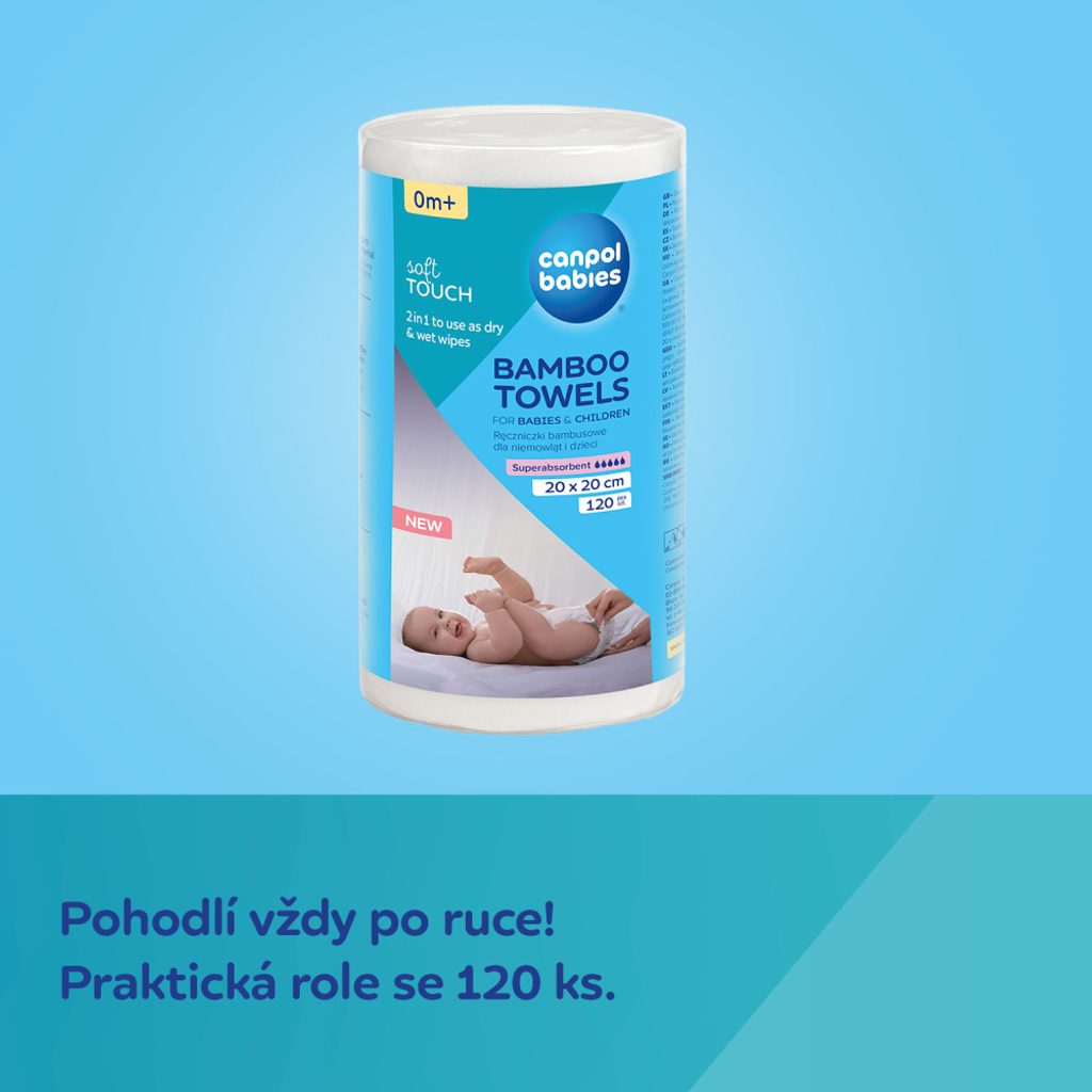 Multifunkční bambusové ručníky 2v1 pro suché i vlhké použití, ideální pro hygienu miminka doma i na cestách, mimořádně jemné a vysoce savé.