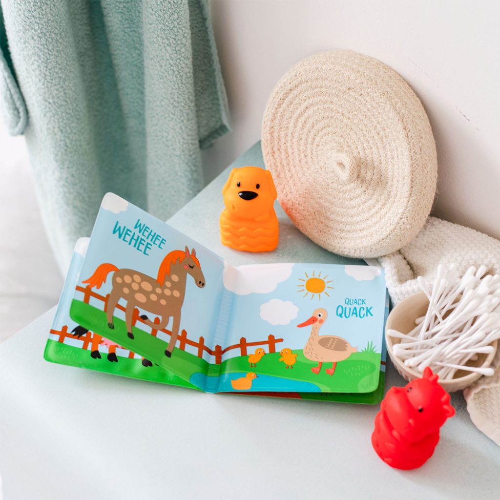 Měkká pískací knížka s barevnými obrázky zvířátek podporuje chuť děťátko poznávat, učit se a zapamatovat si nová slova. Je vhodná také jako hračka do vody. Neobsahuje BPA a je vhodná pro děti od 6-ti měsíců.