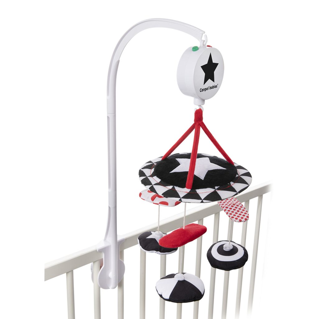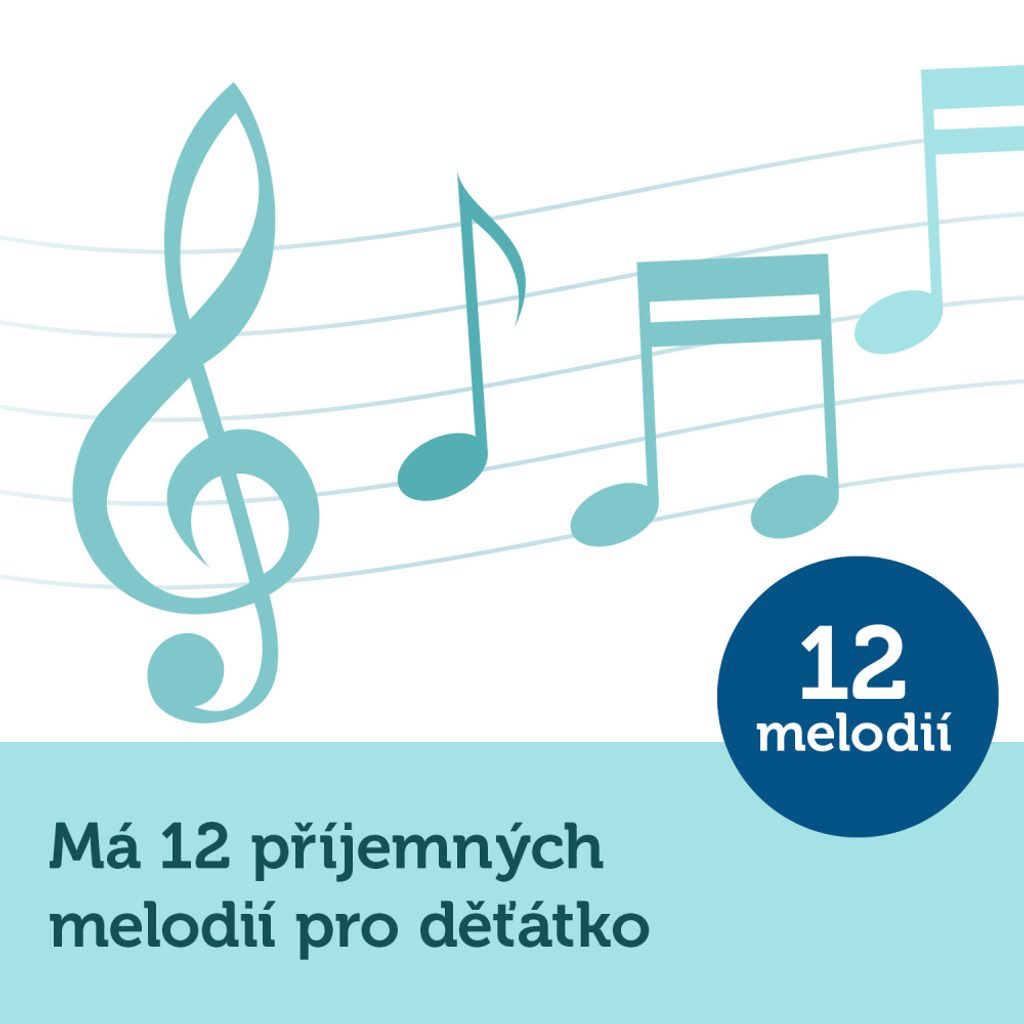 Hračky se pohybují, melodie dítě uklidní a usnadňuje jeho usínání.