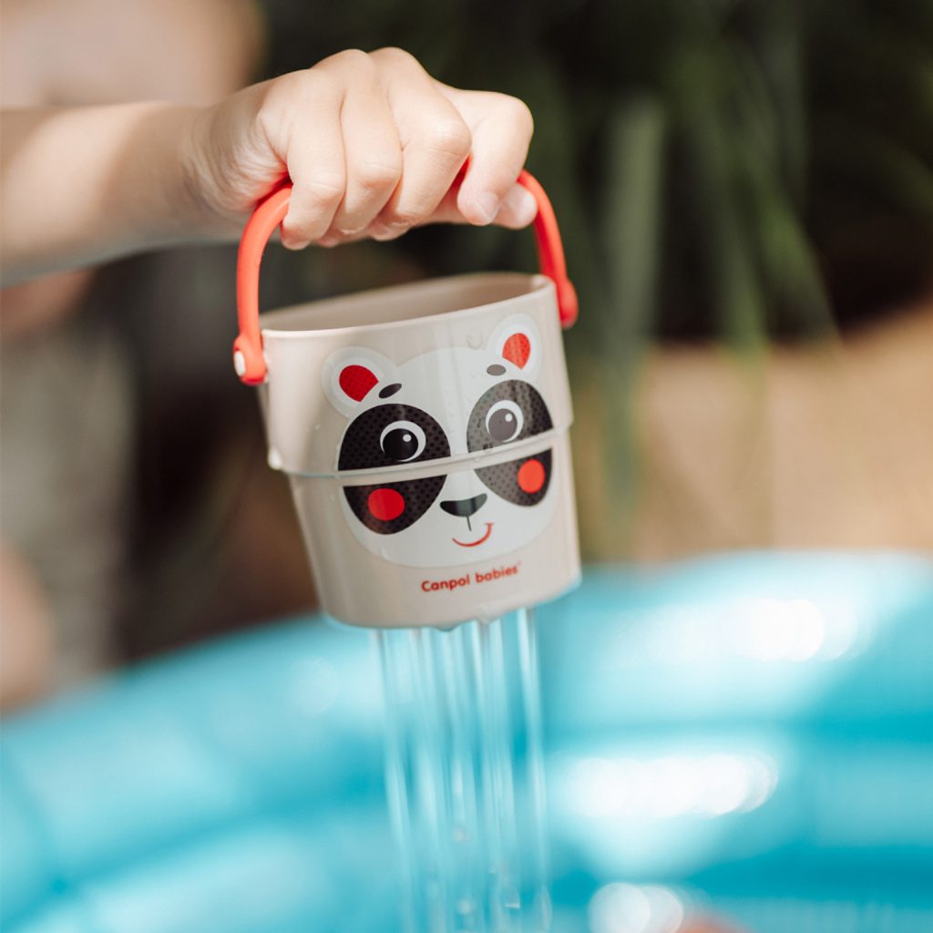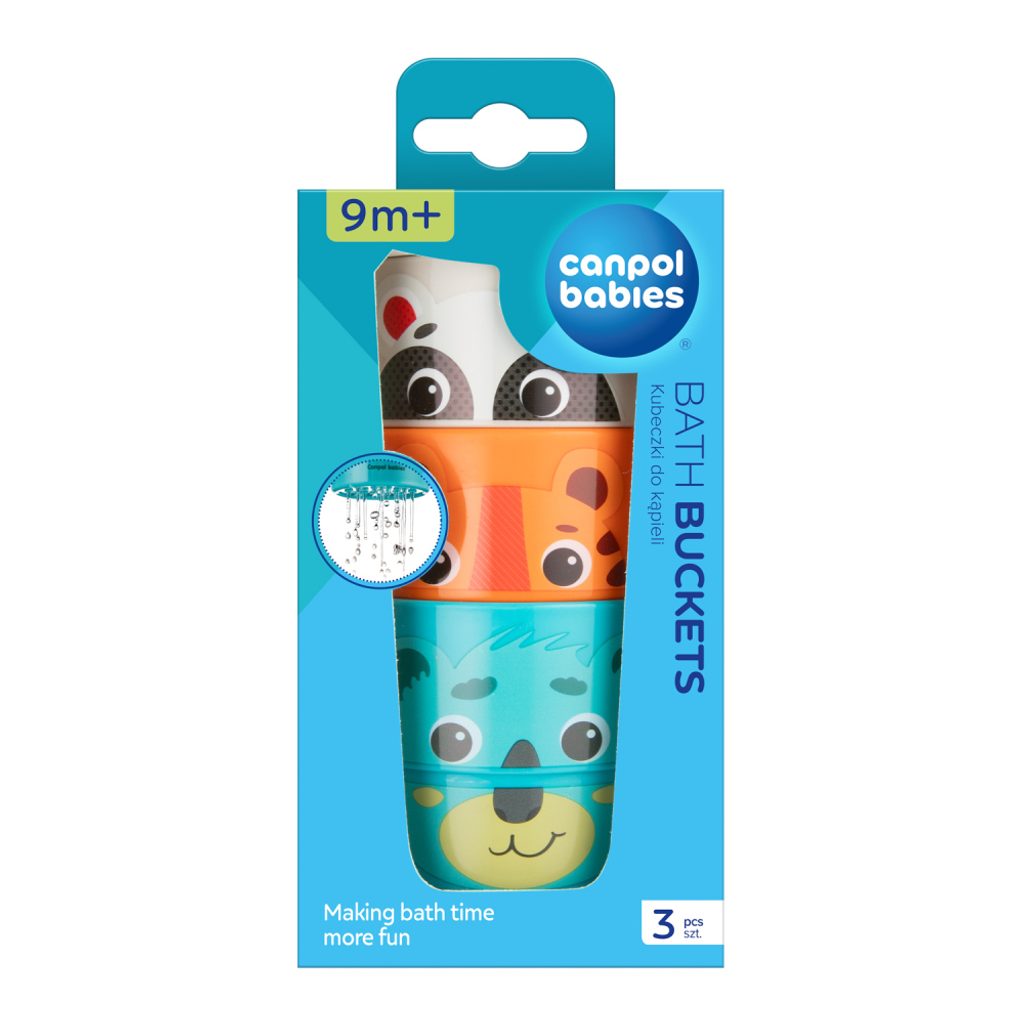 Set tří kyblíků do vody z roztomilé kolekce HELLO LITTLE od Canpol babies podporuje chuť dítěte poznávat, učit se a vymýšlet nové zábavné hry při koupání.